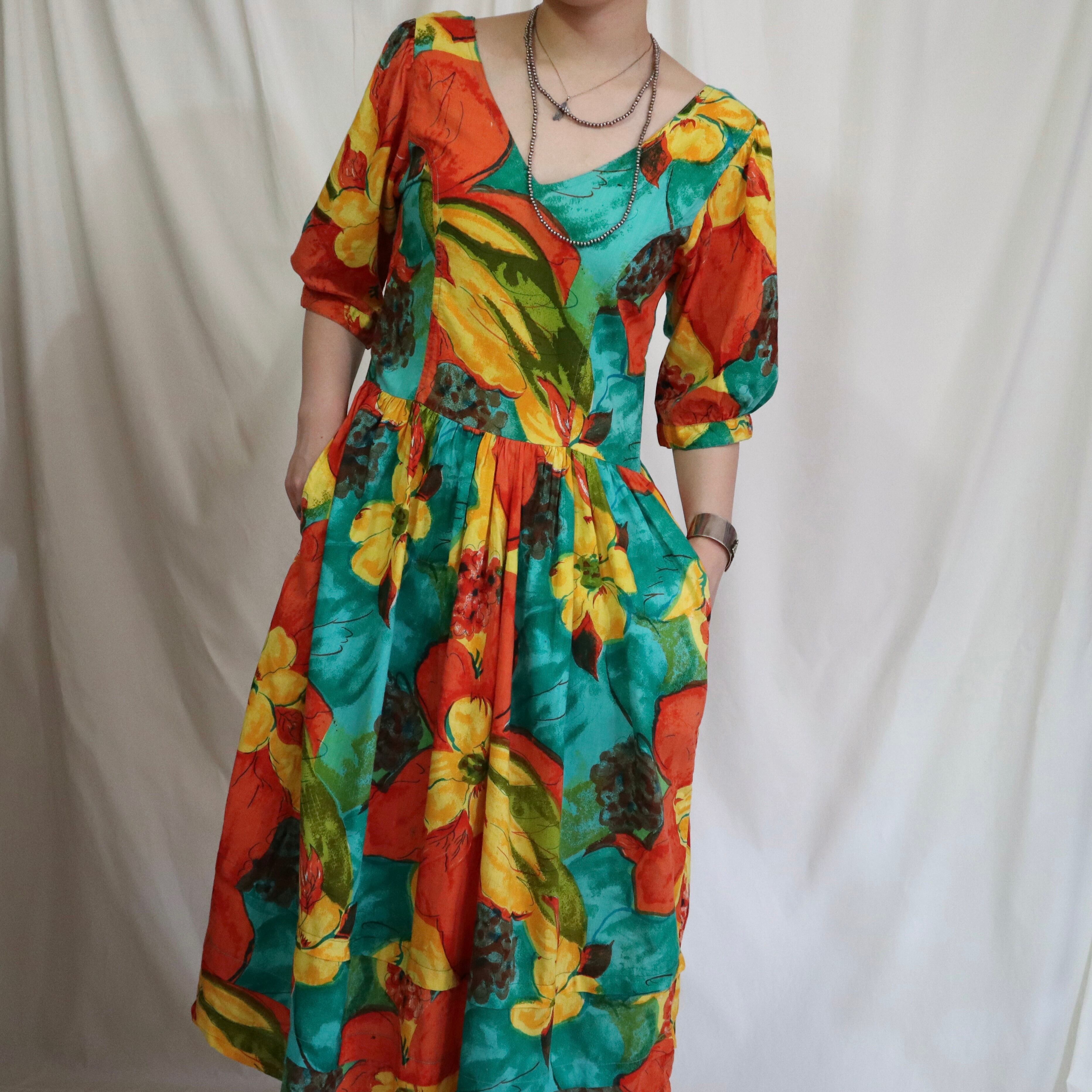 パキッとした色合いの花柄で、裾がティアードになっています。