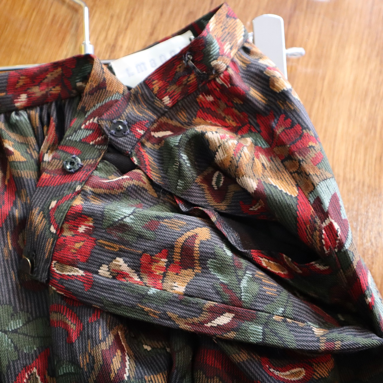 柄自体は派手さがありますが、ダークトーンで着やすい雰囲気です。