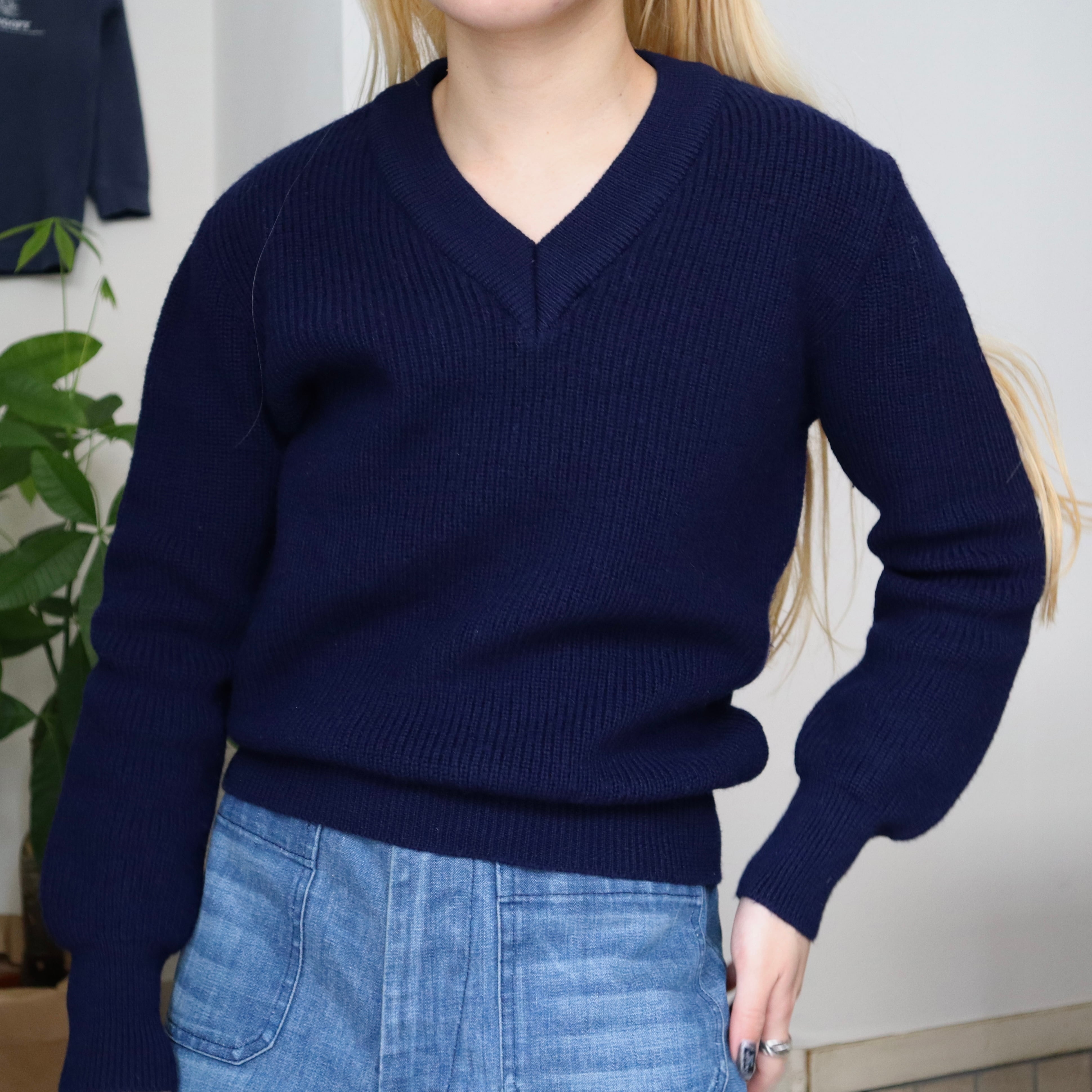 ネイビーにVネックとシンプルですが、マルボロのタグが可愛いポイントです。