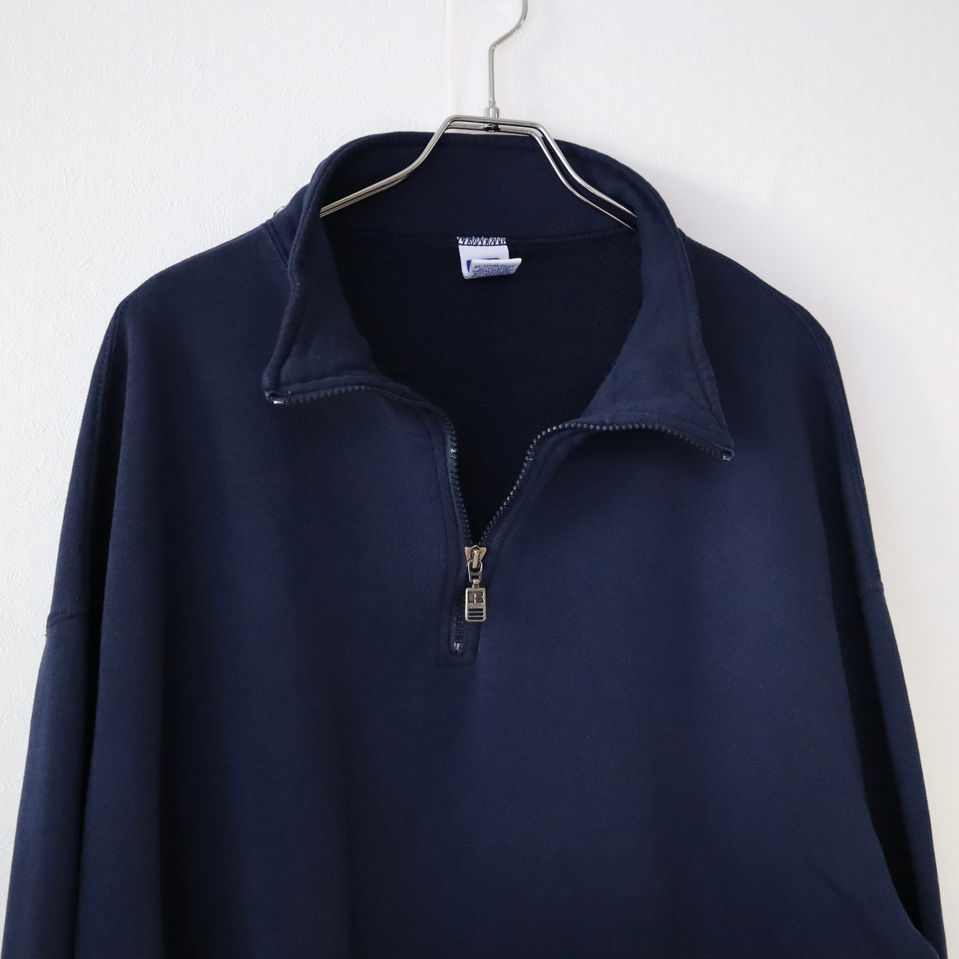 ラッセル定番前Vガゼット付きスウェットと比べると圧倒的に球数が少ないハーフジップタイプ。