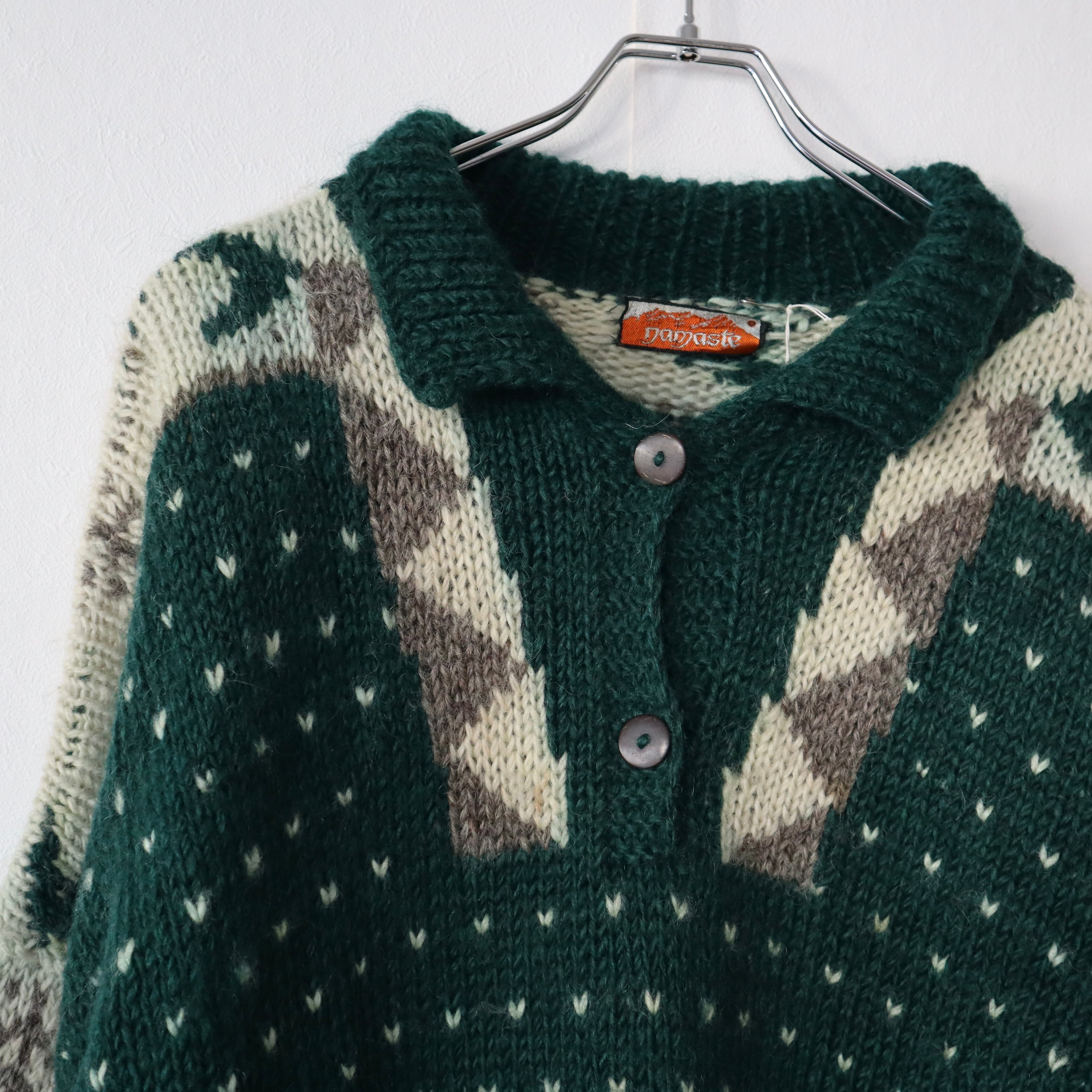 プルオーバーの襟付きで、裾と袖口の方にはクローバーの模様が入っています。