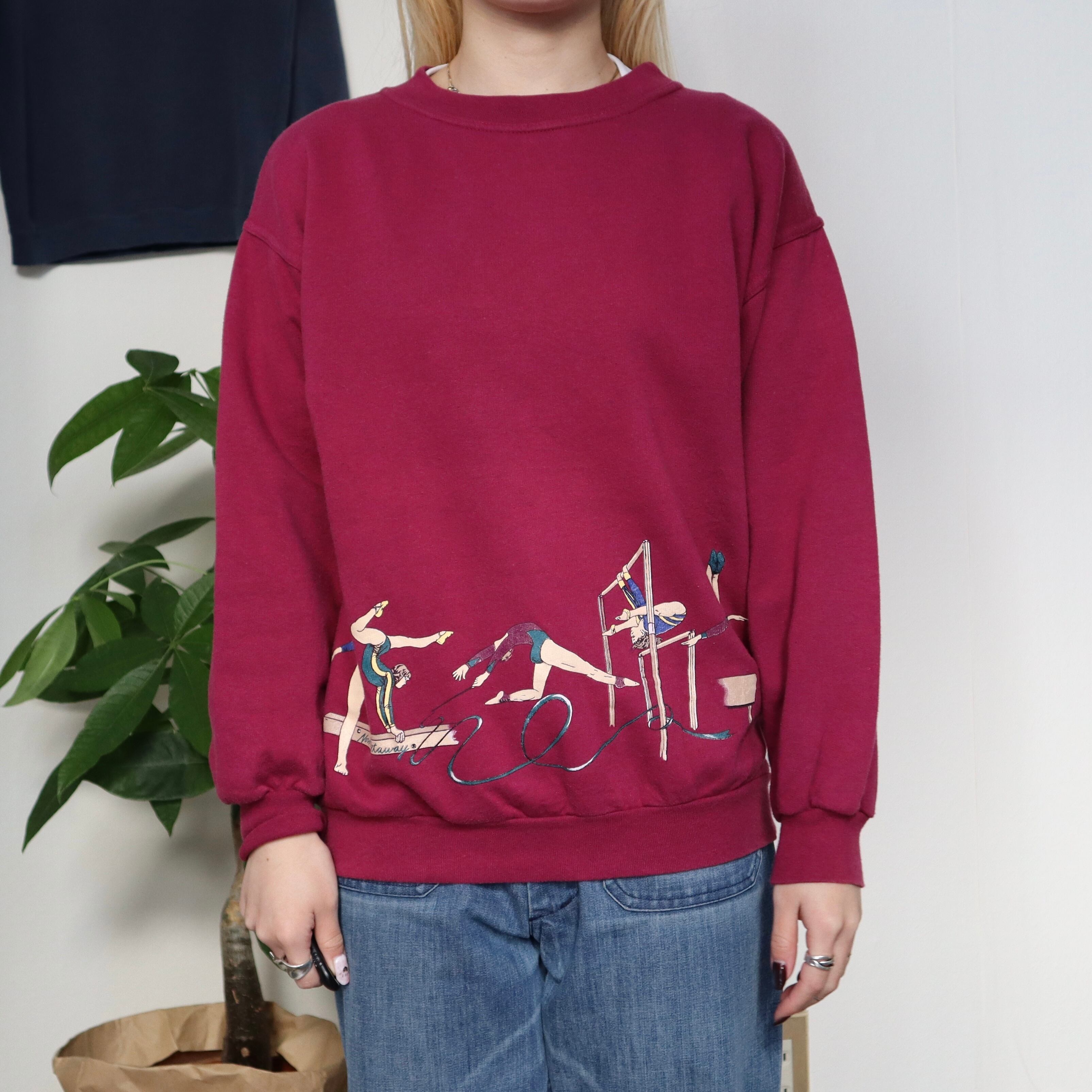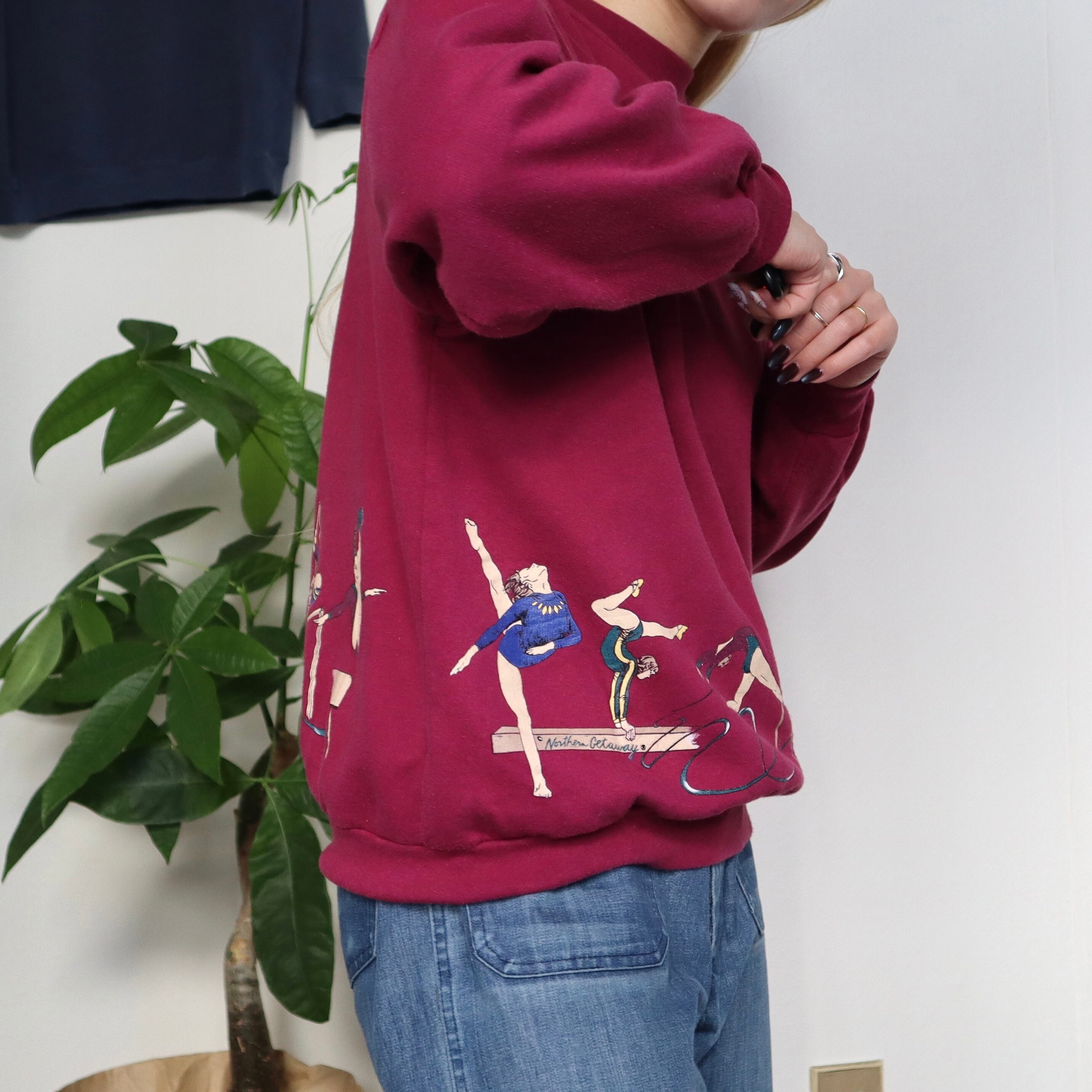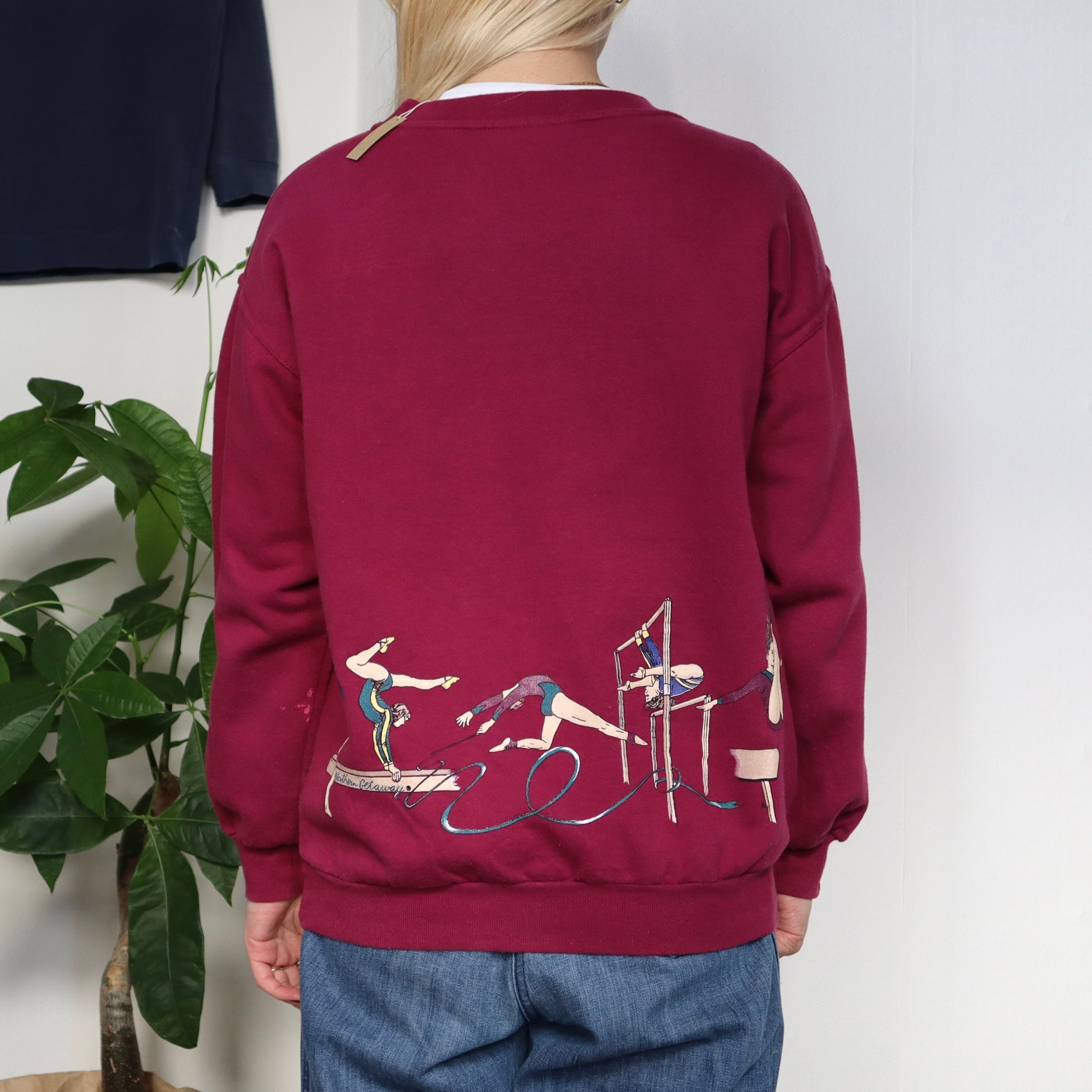 バーガンディーのボディに体操ガールズが両面プリントされています。
