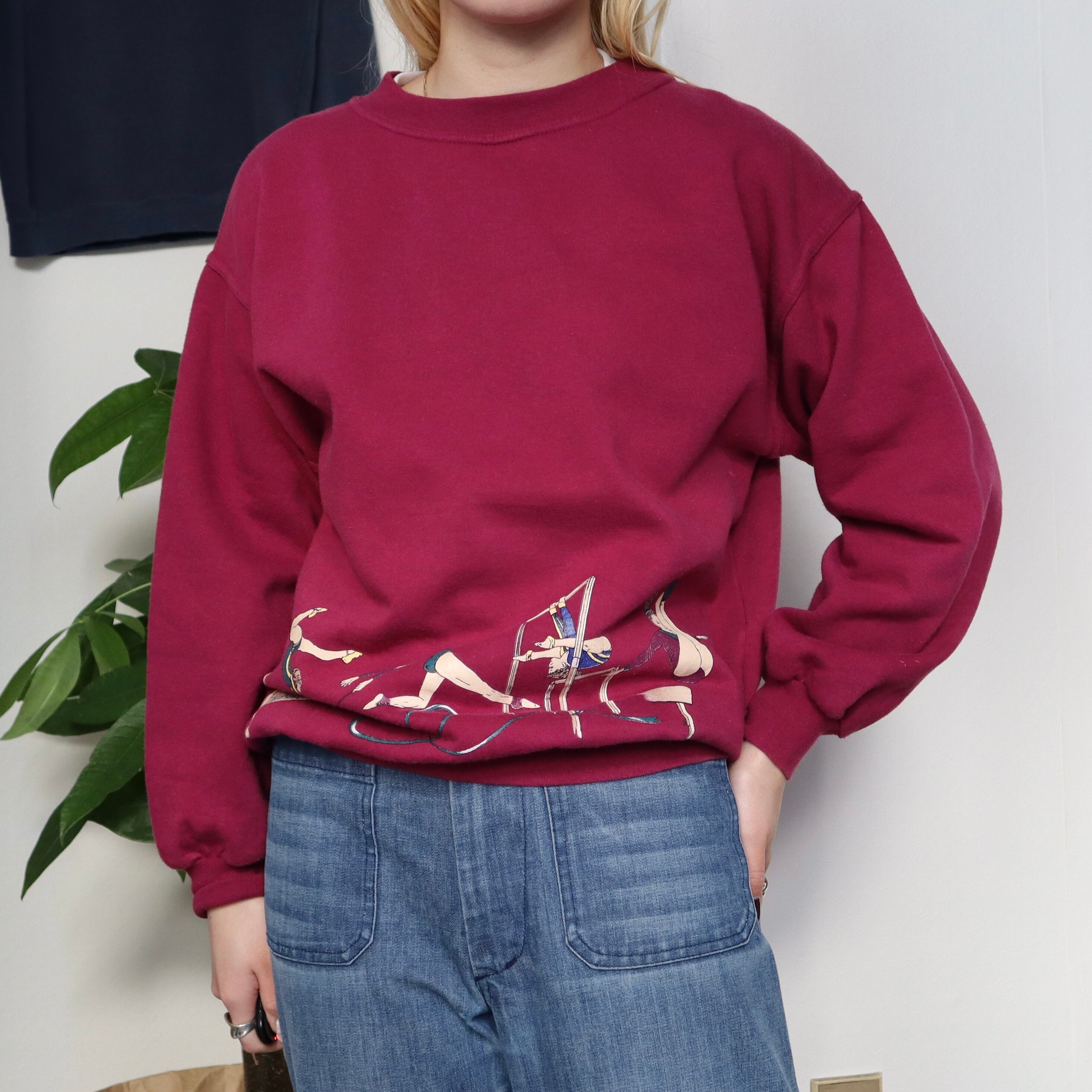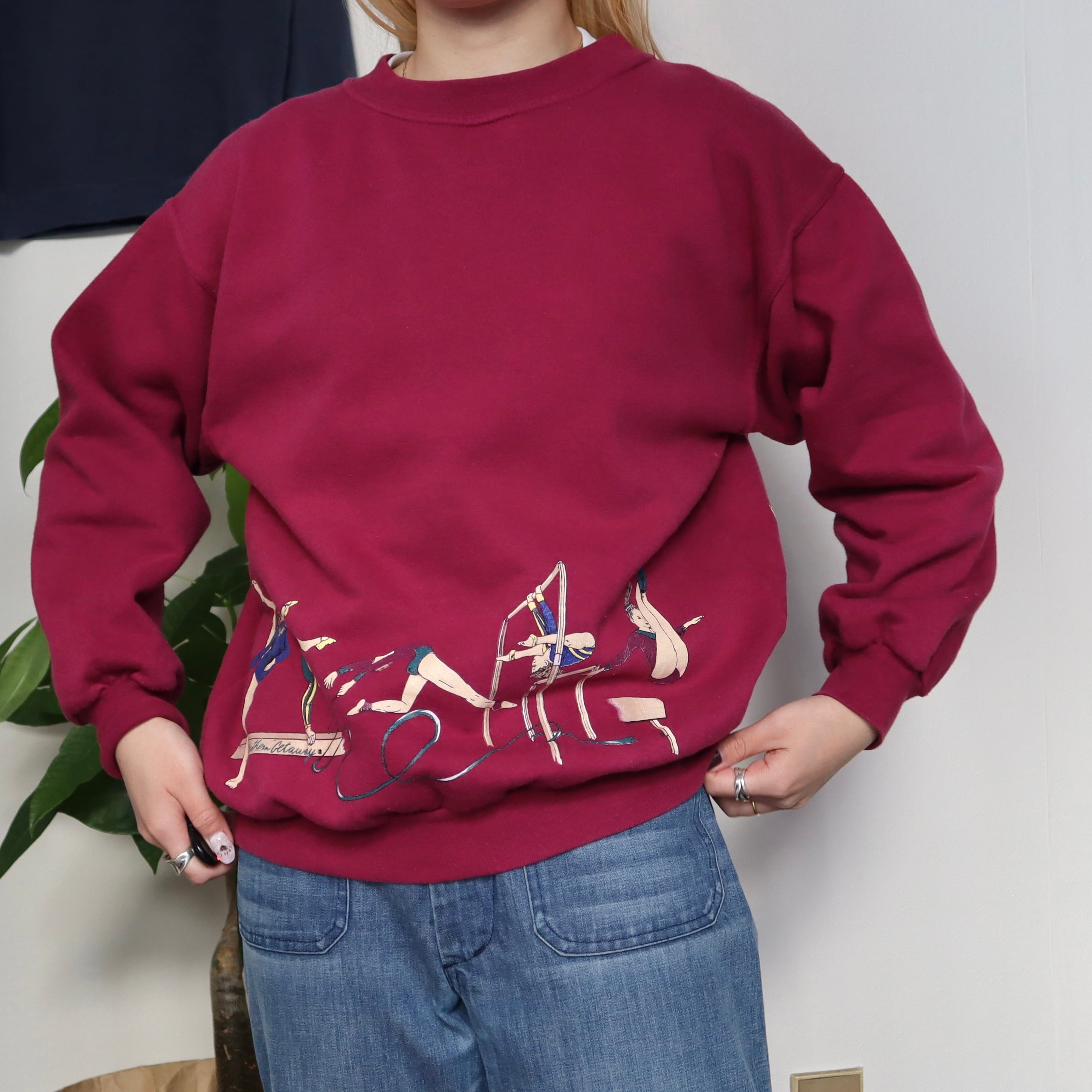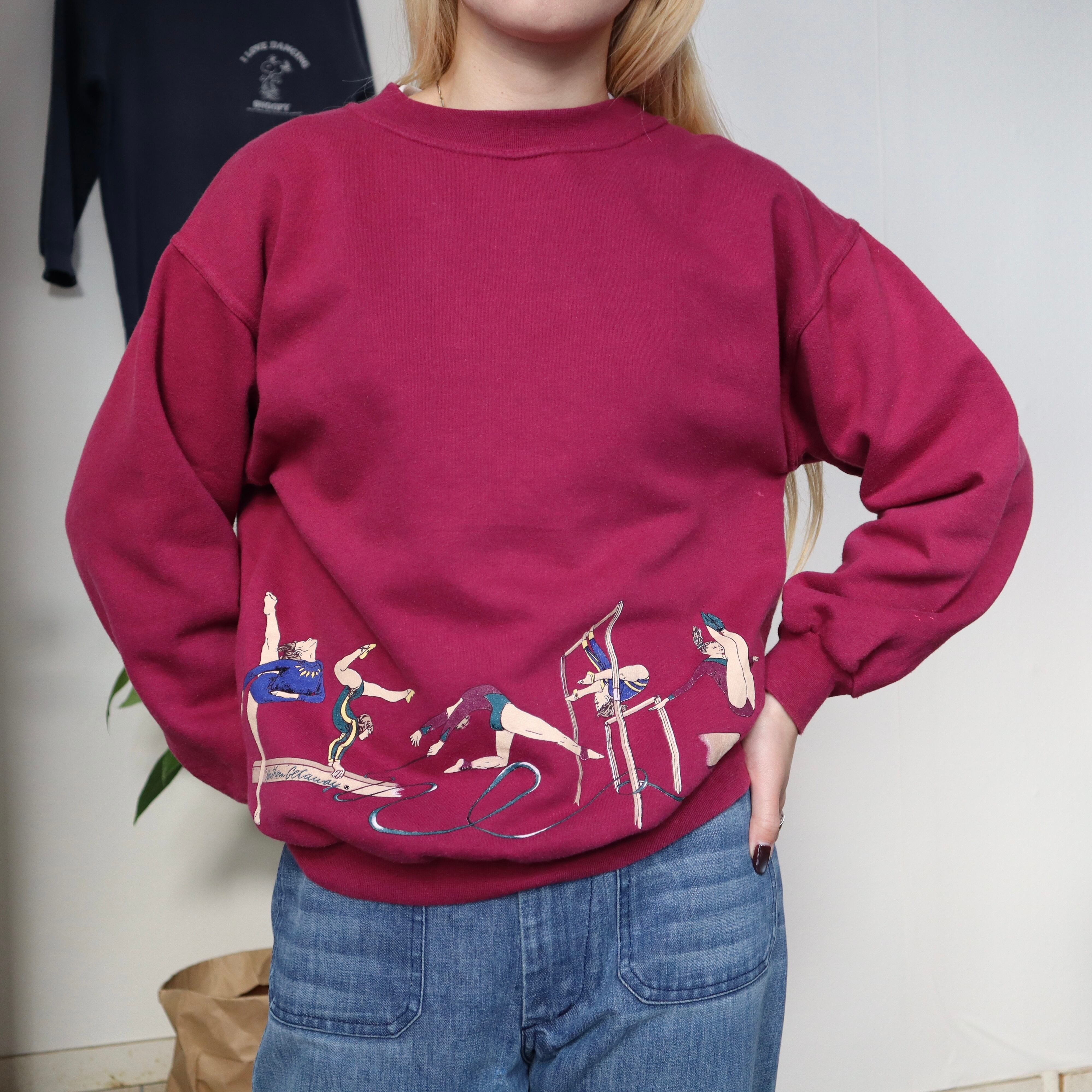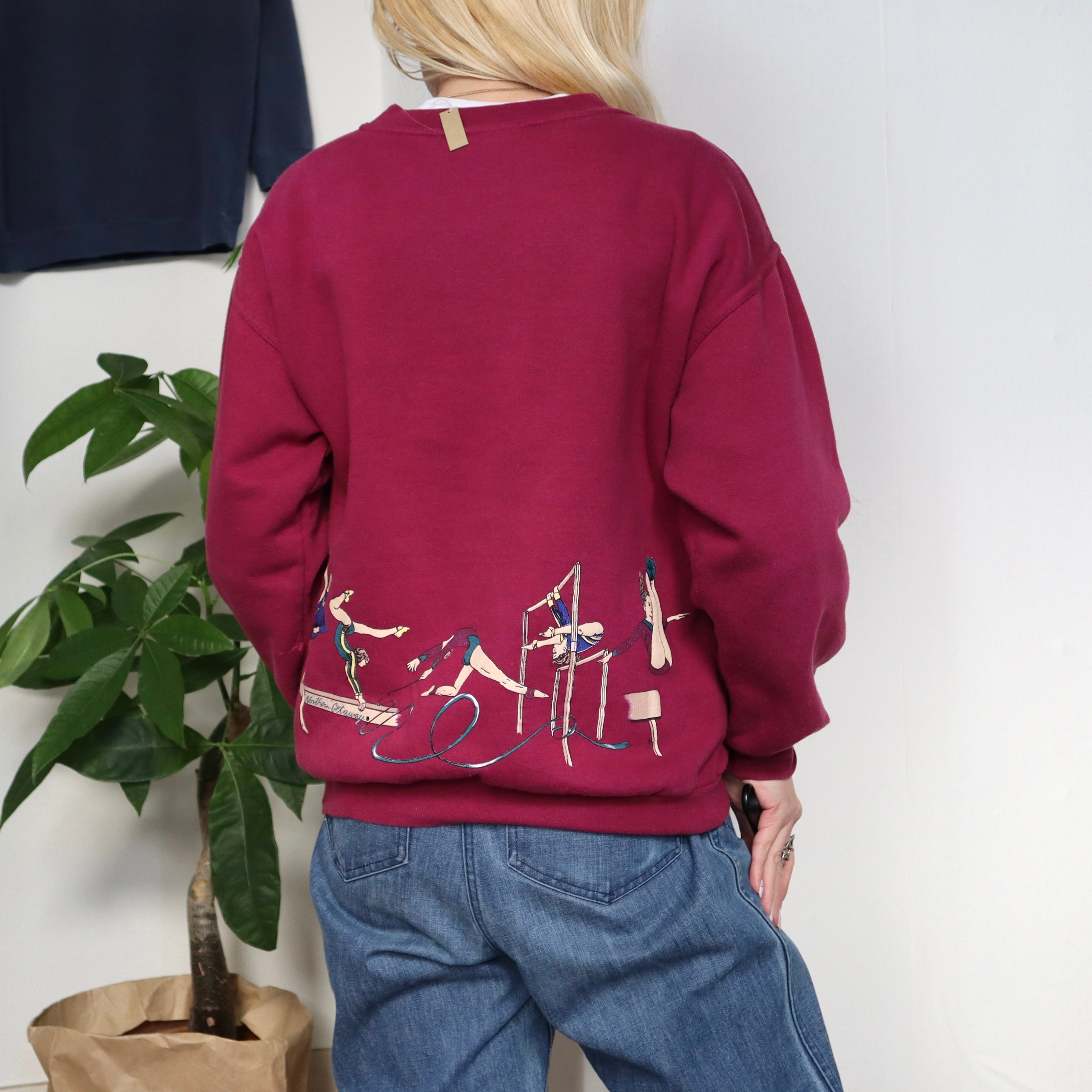 バーガンディーのボディに体操ガールズが両面プリントされています。