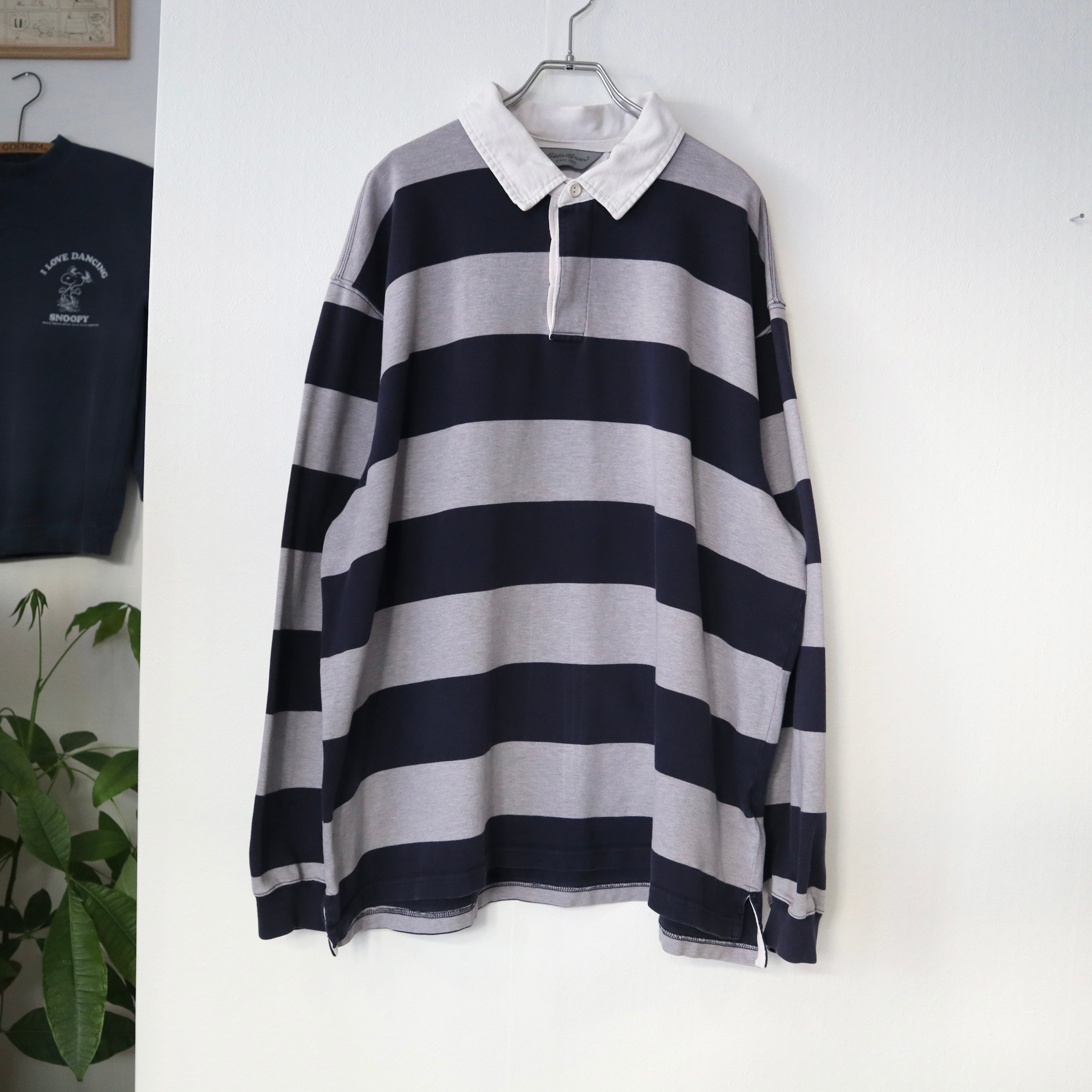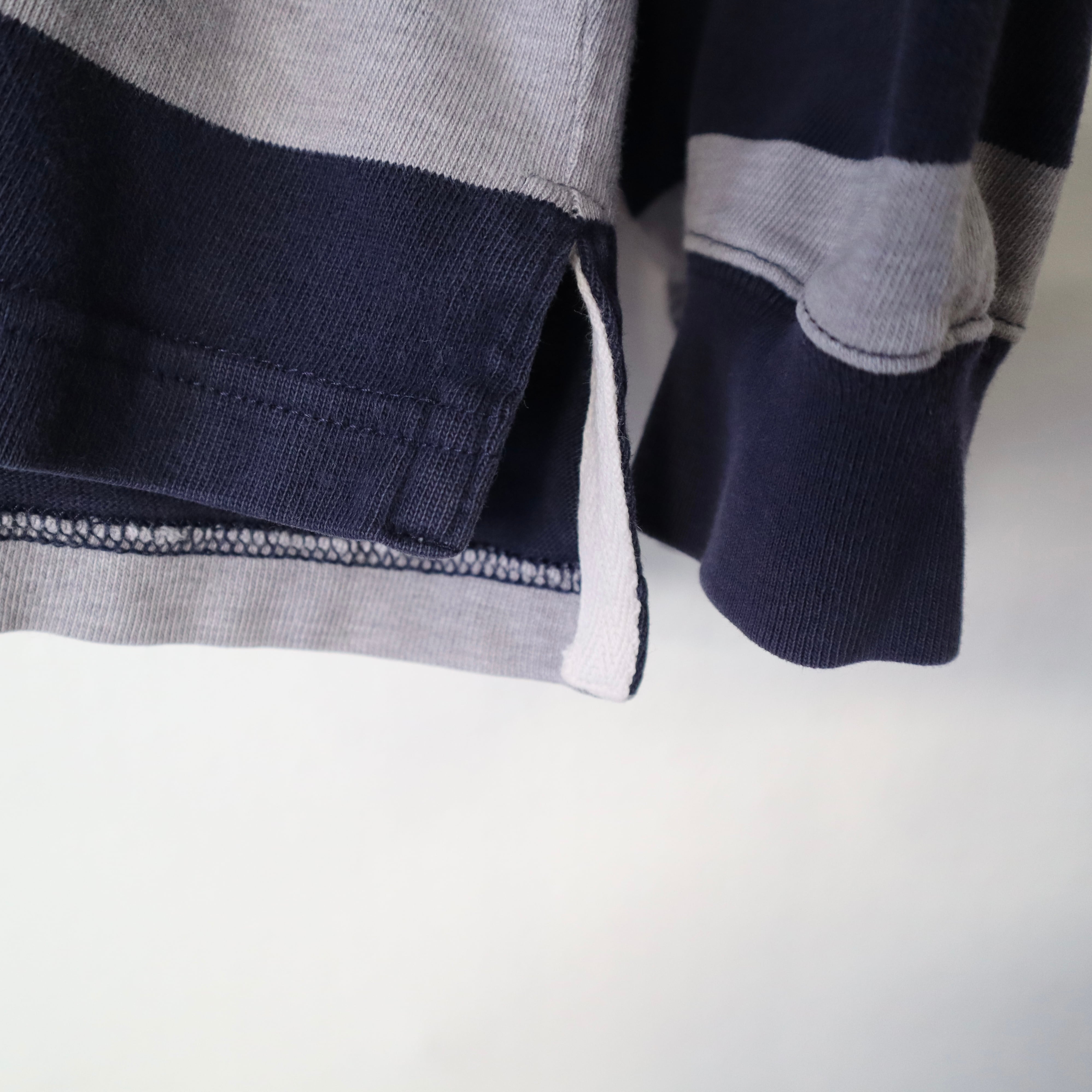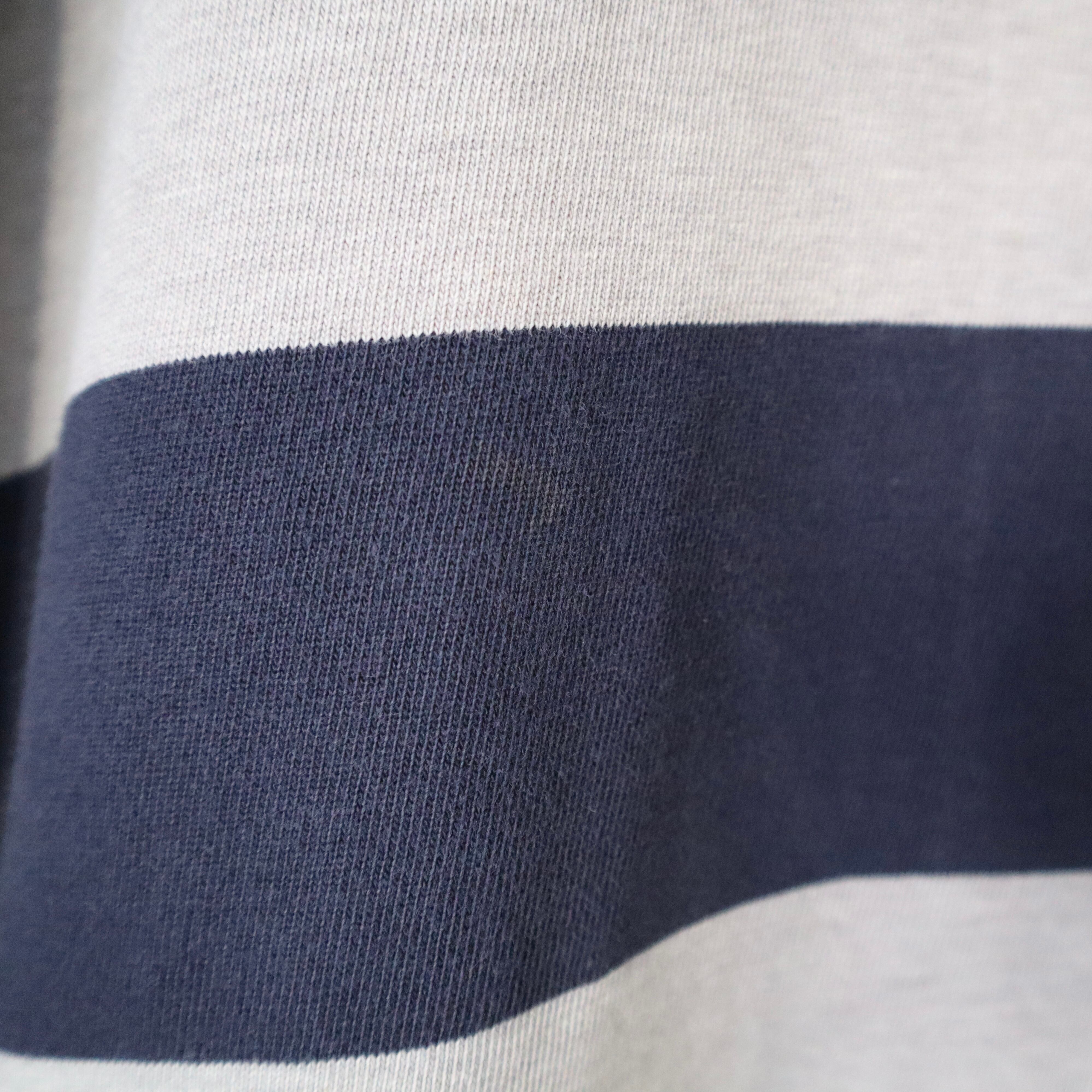 太ピッチボーダーでサイドスリット入りのラガーシャツ。