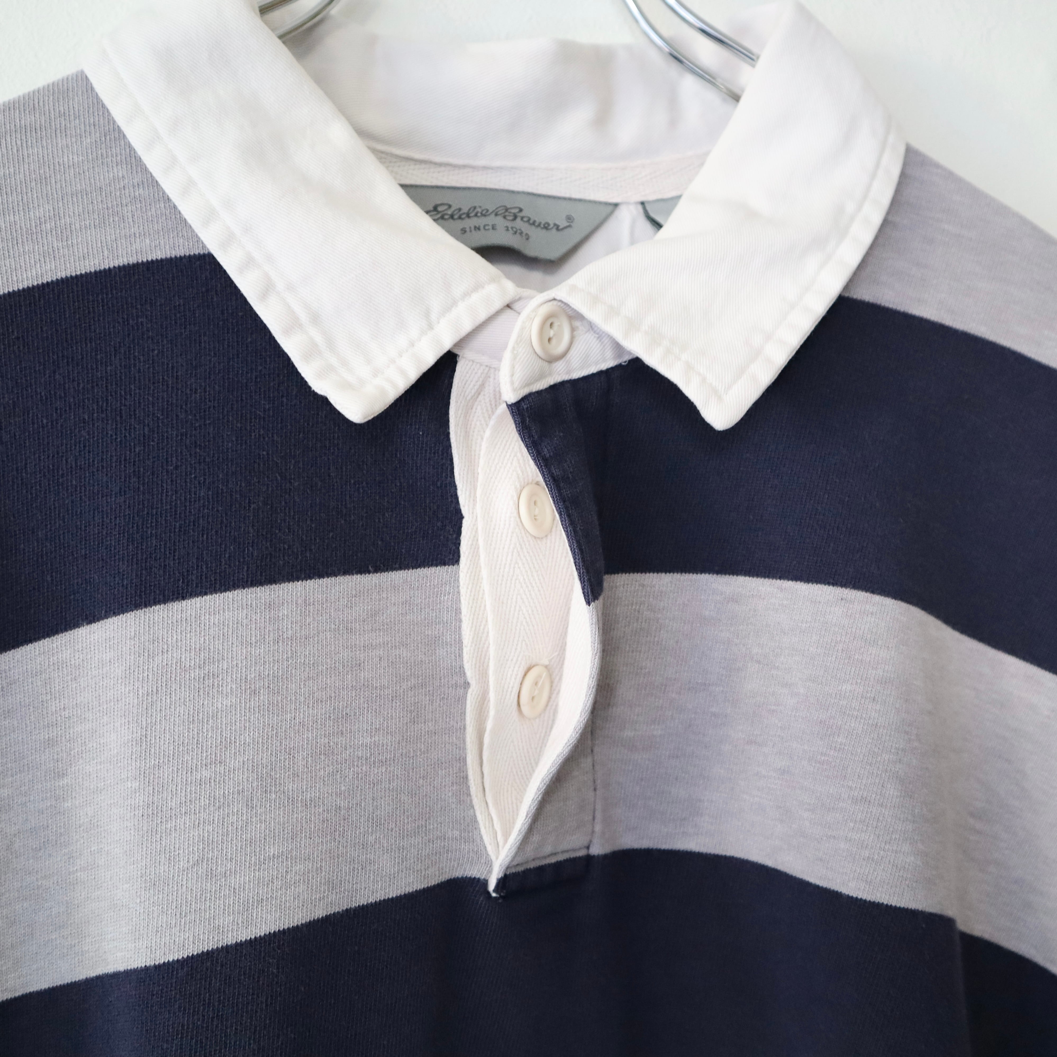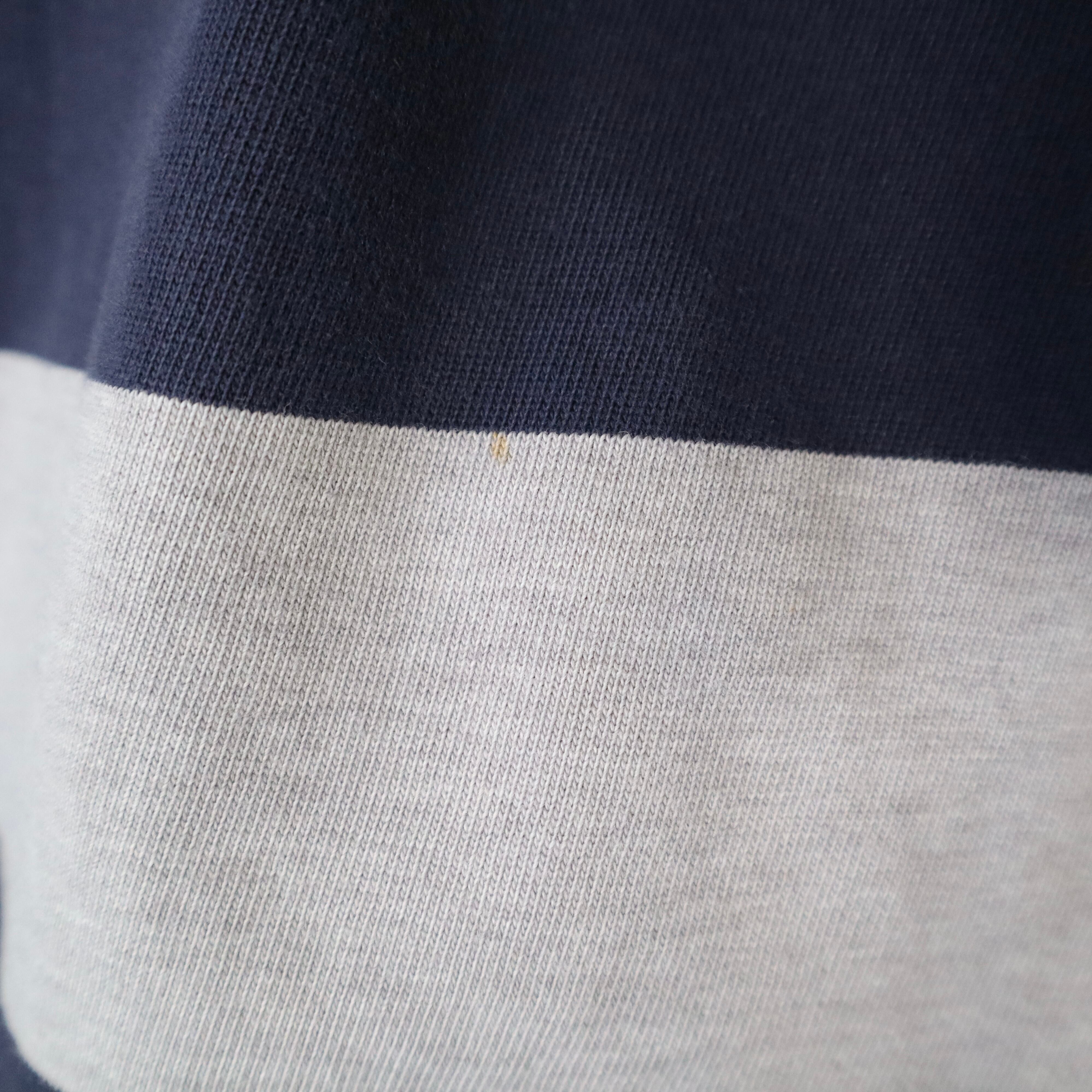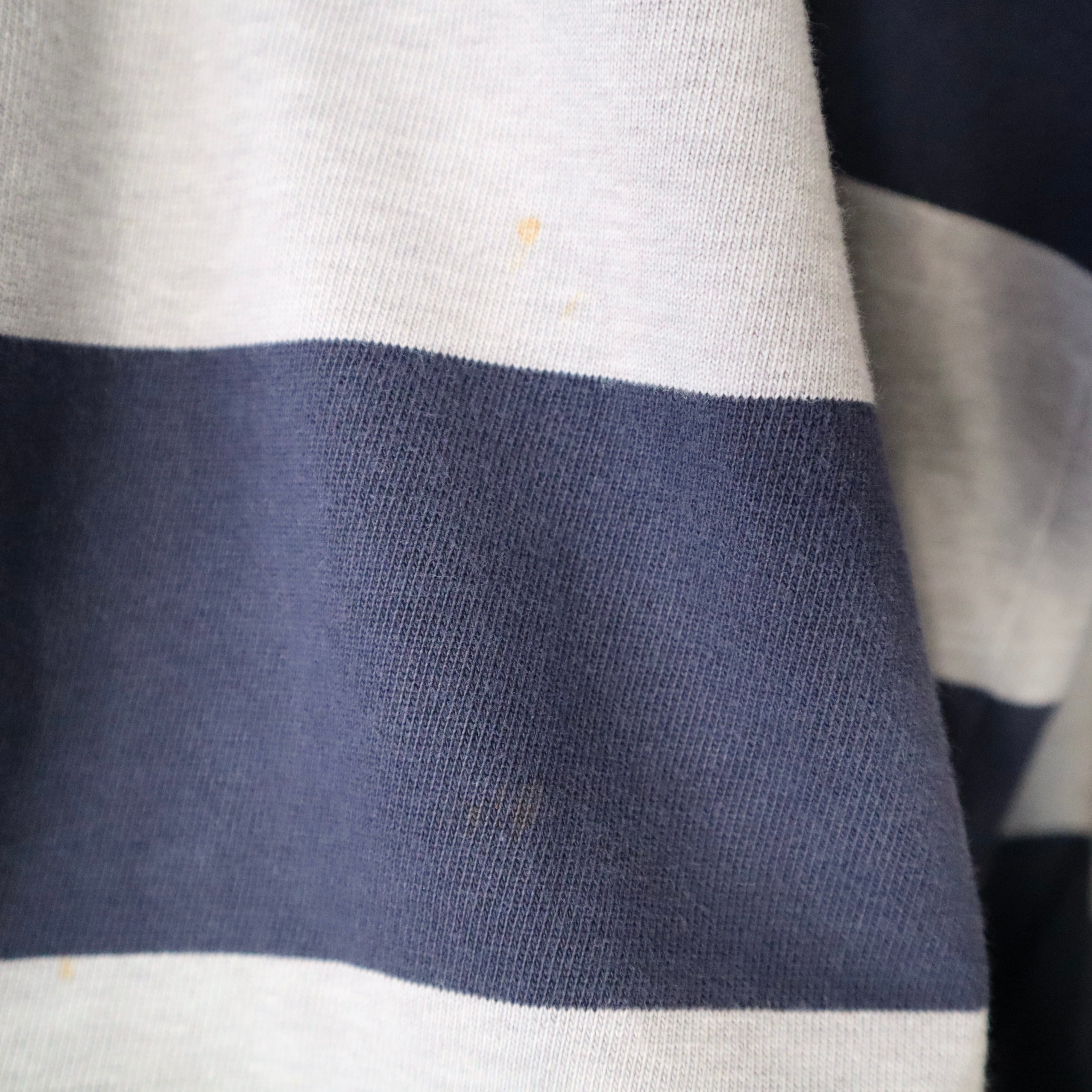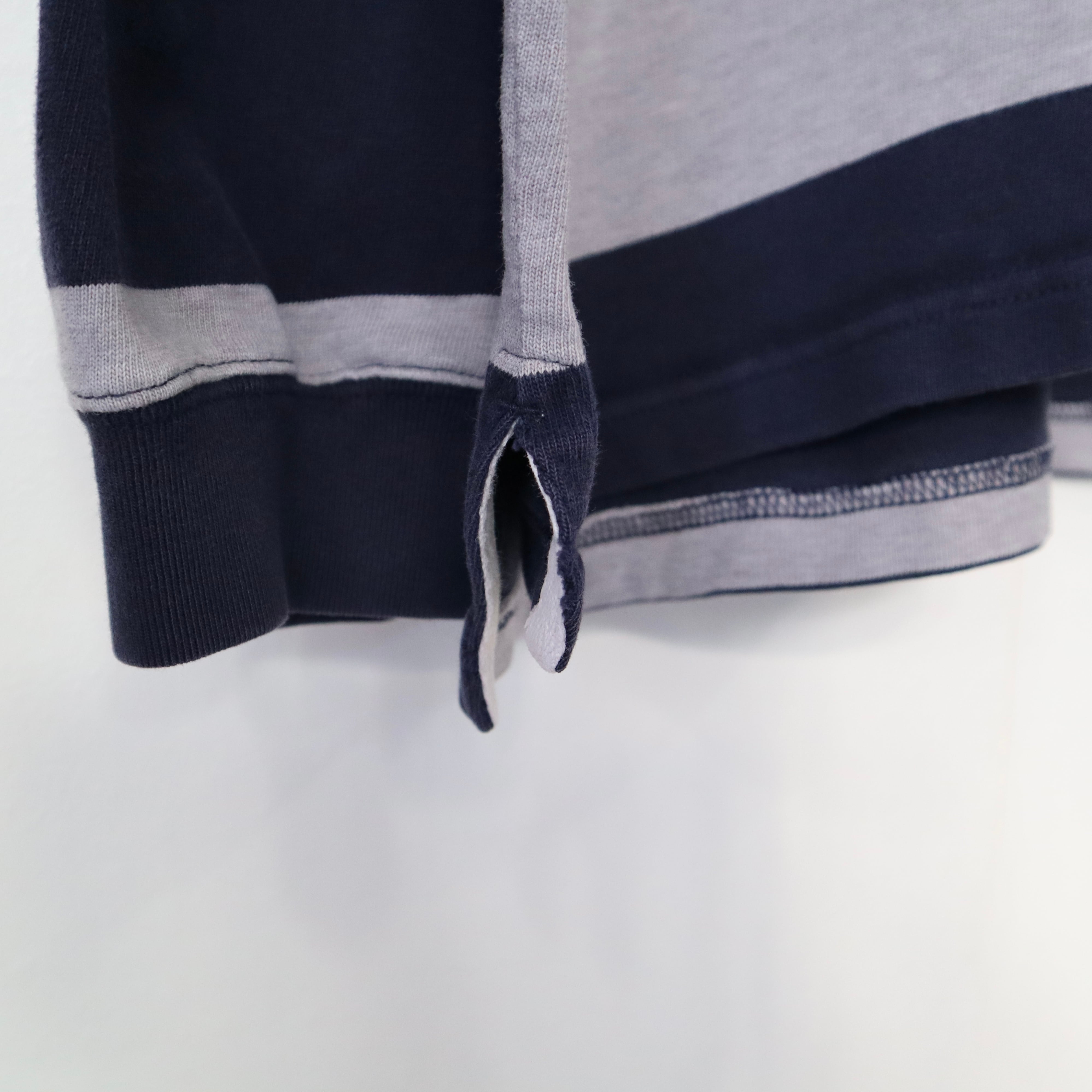 太ピッチボーダーでサイドスリット入りのラガーシャツ。
