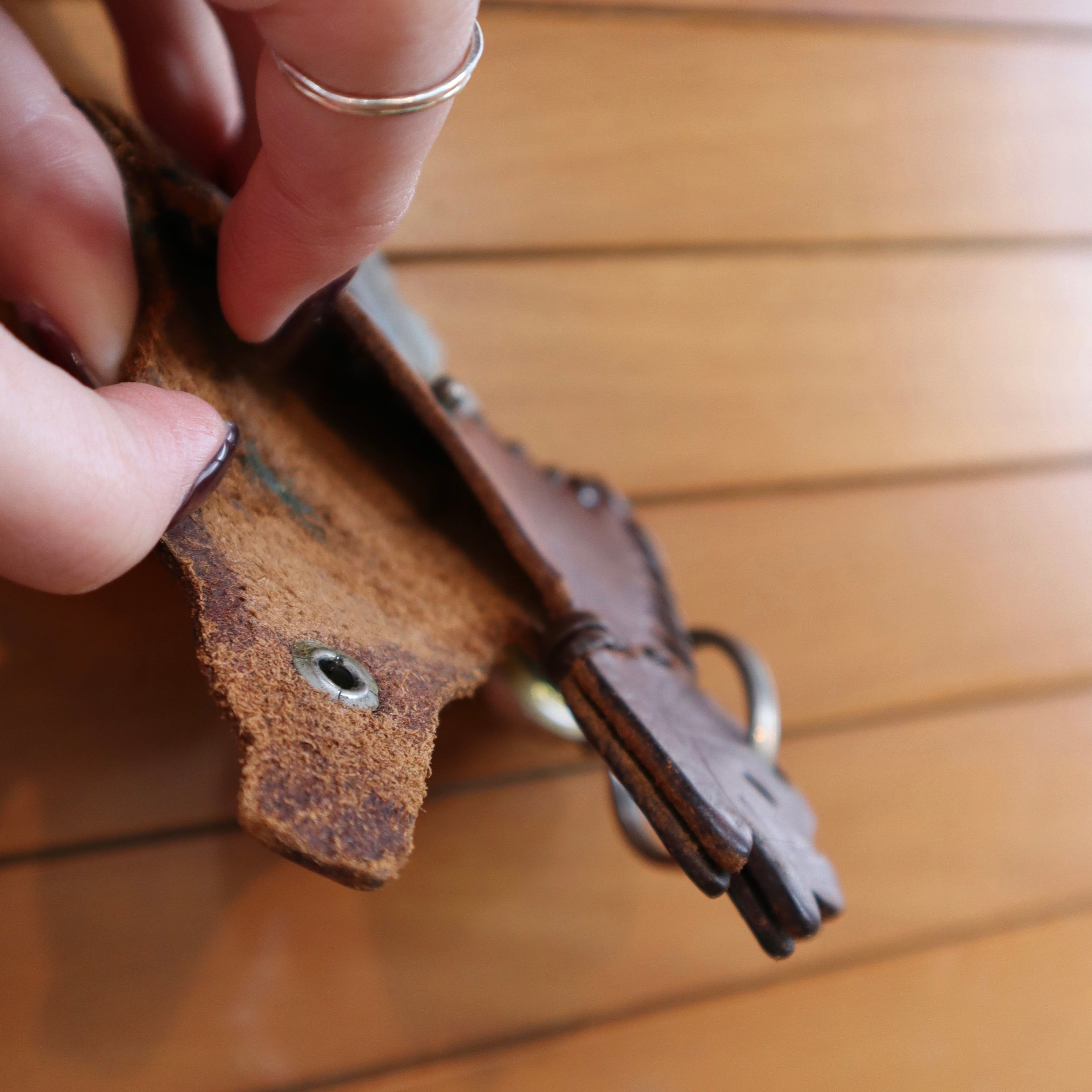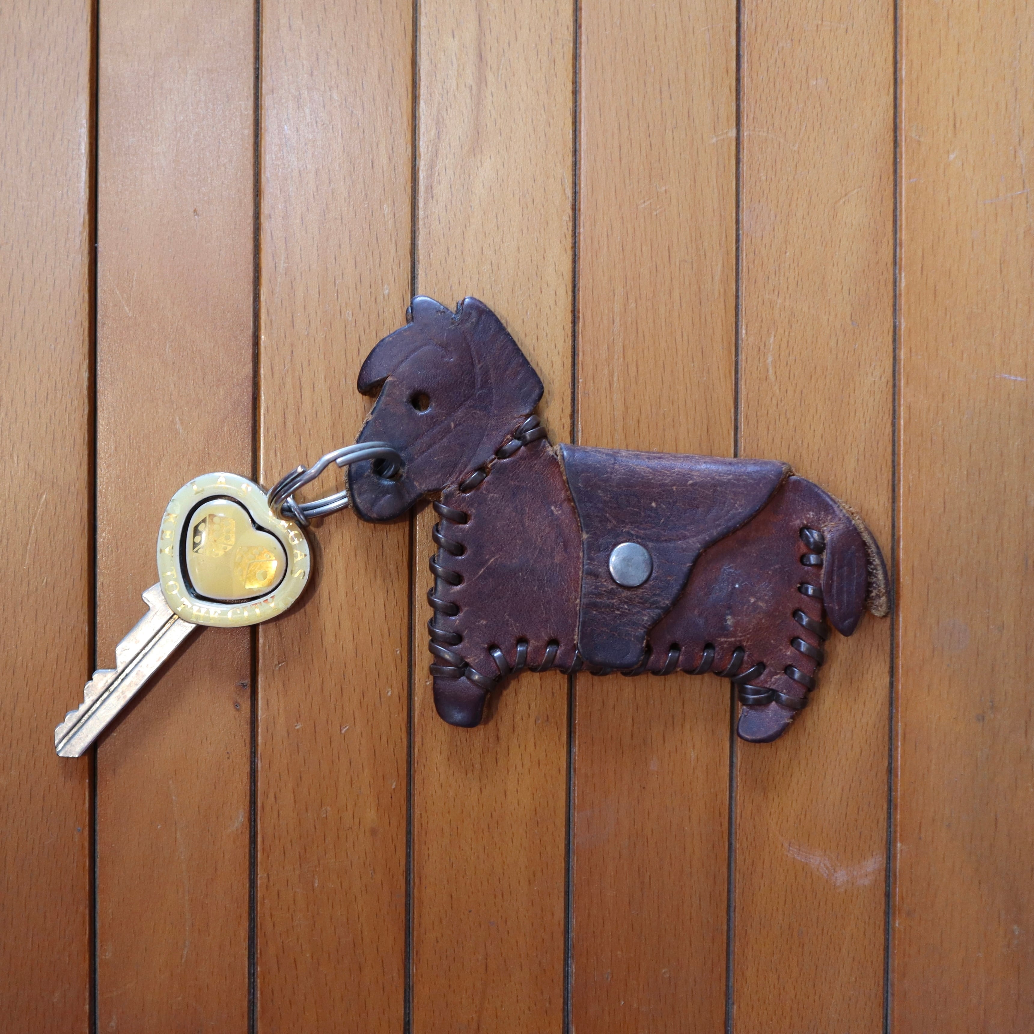 old leather horse key holder
