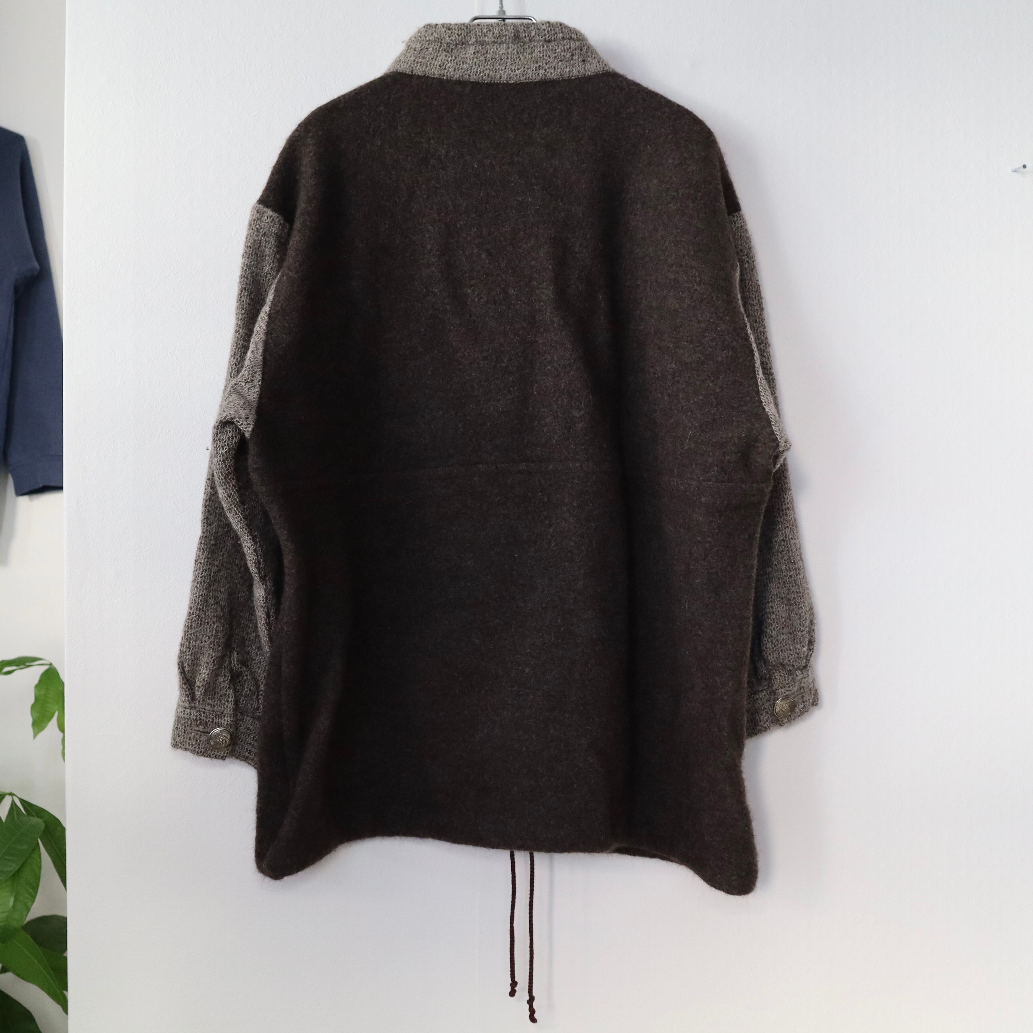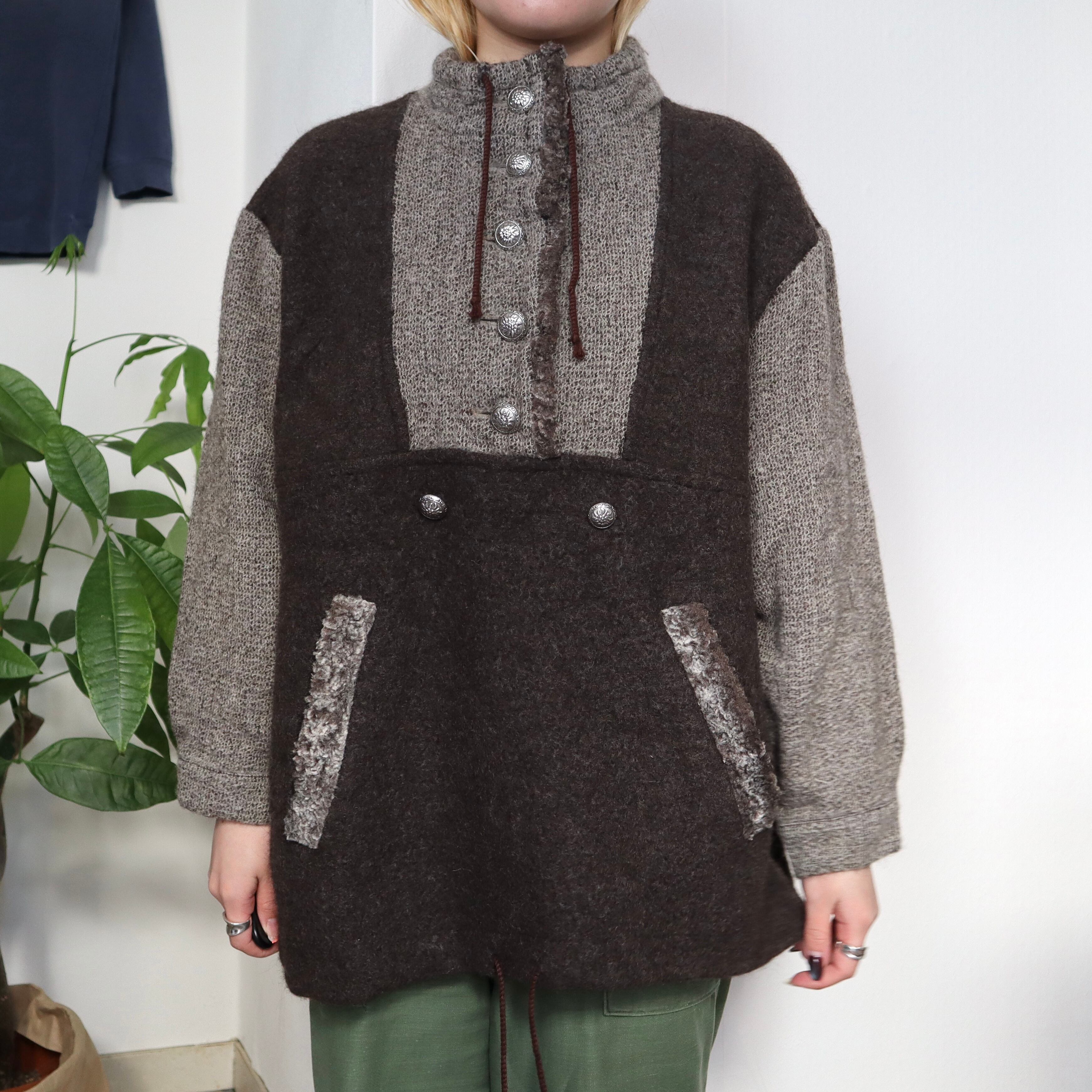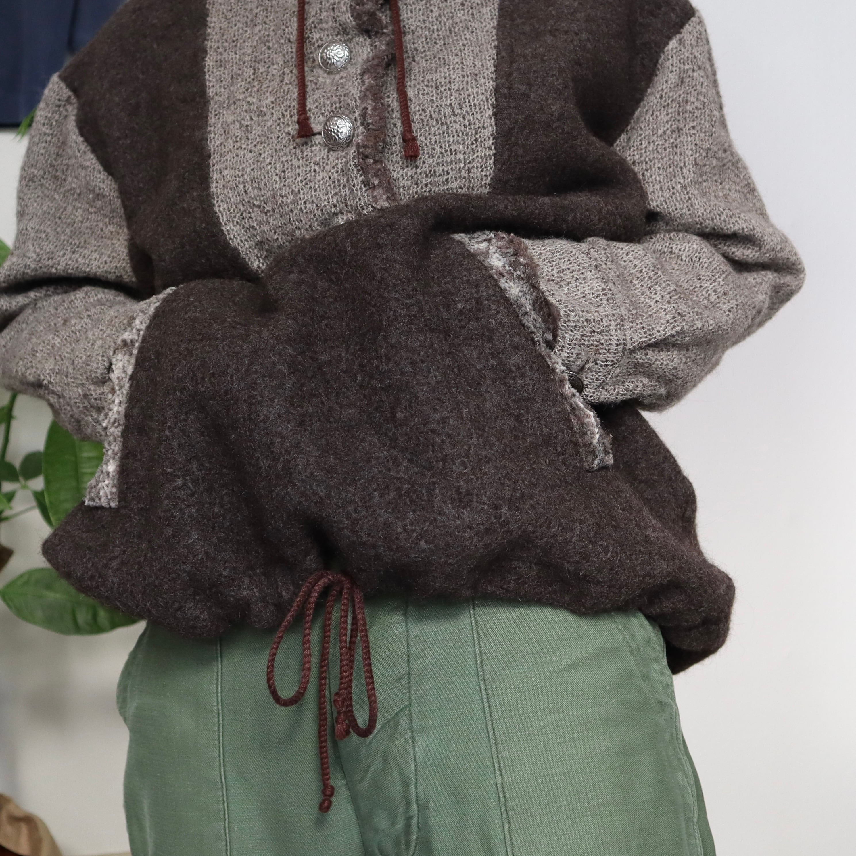 アノラックのようなシルエットのニットトップスです。