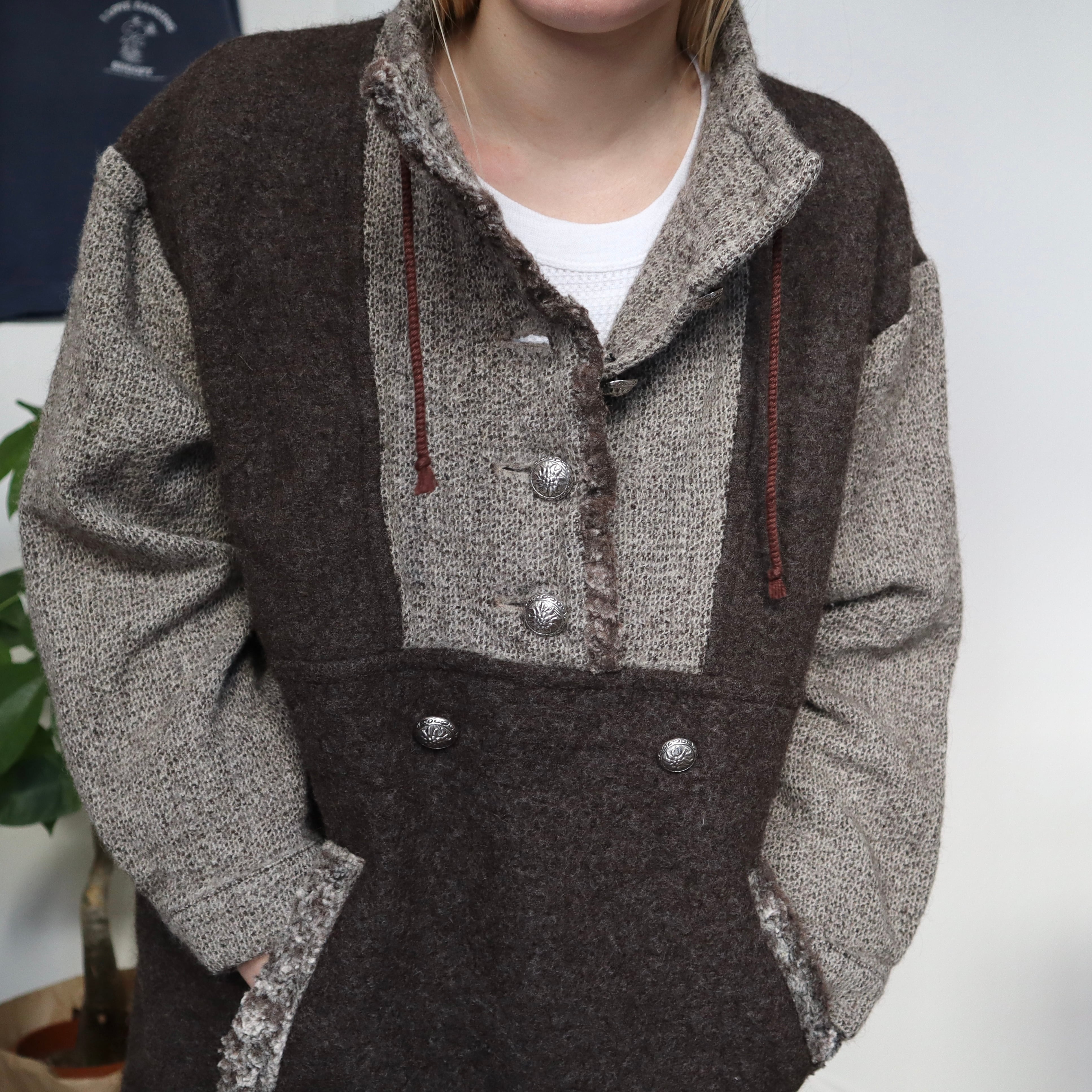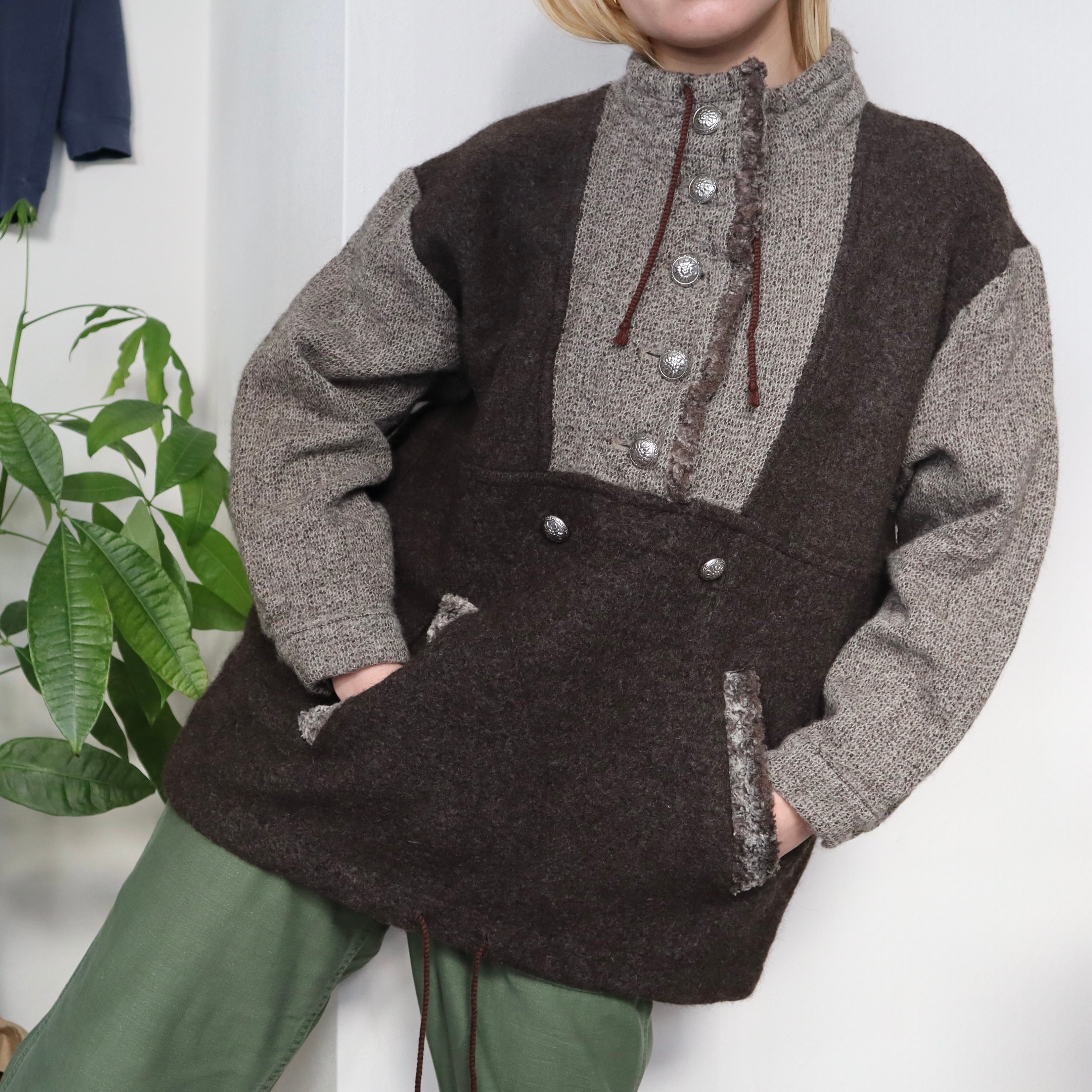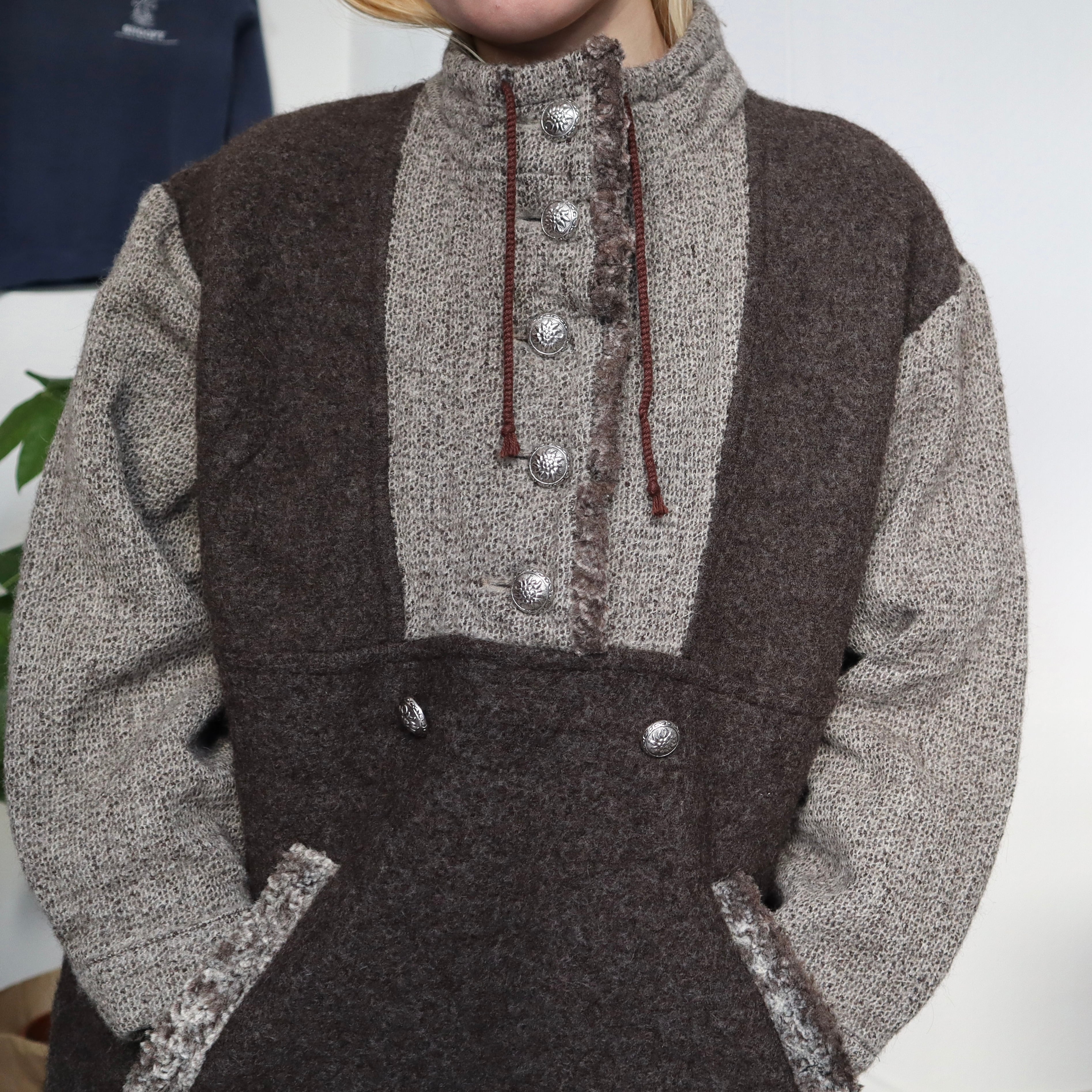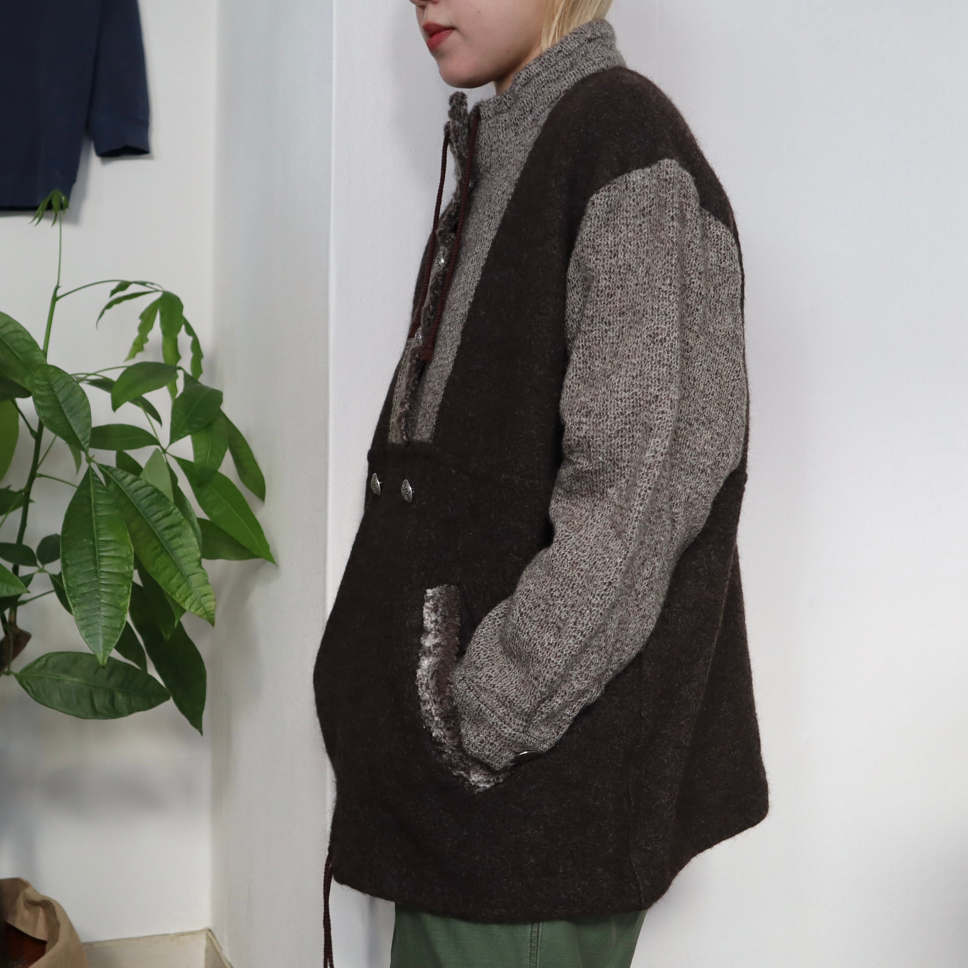 アノラックのようなシルエットのニットトップスです。