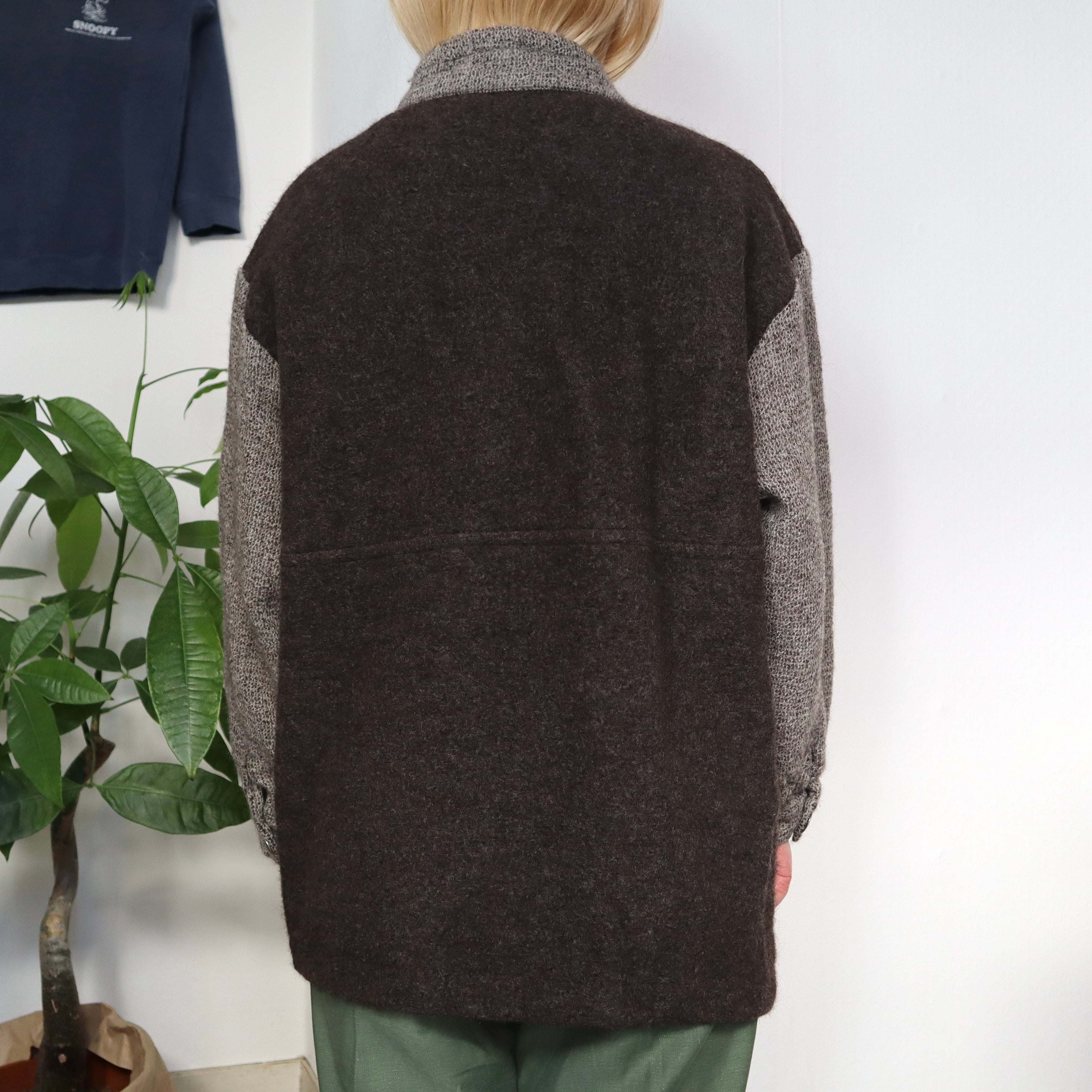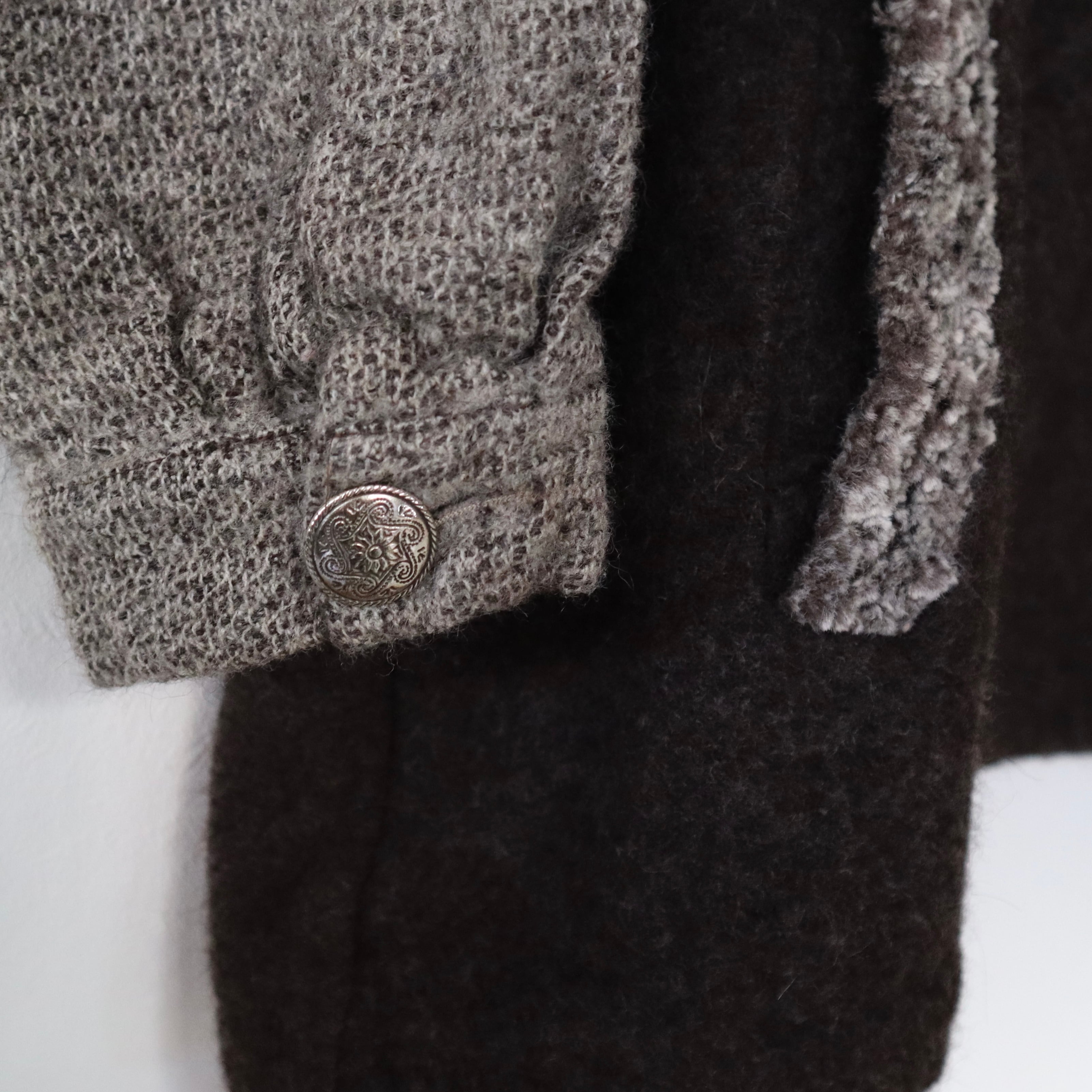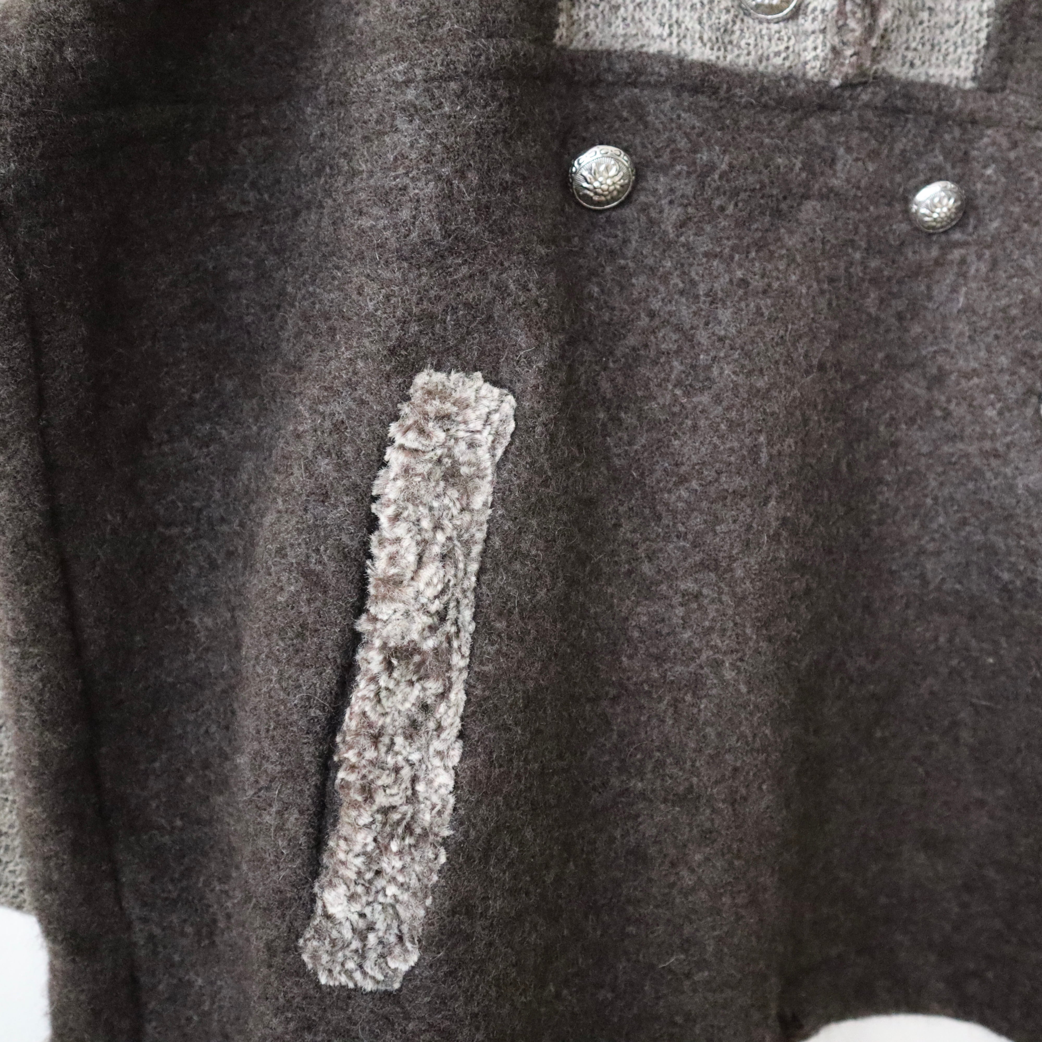 袖・襟元と身頃の素材が違い、ポケットと前立てには控えめなボアが付いています。