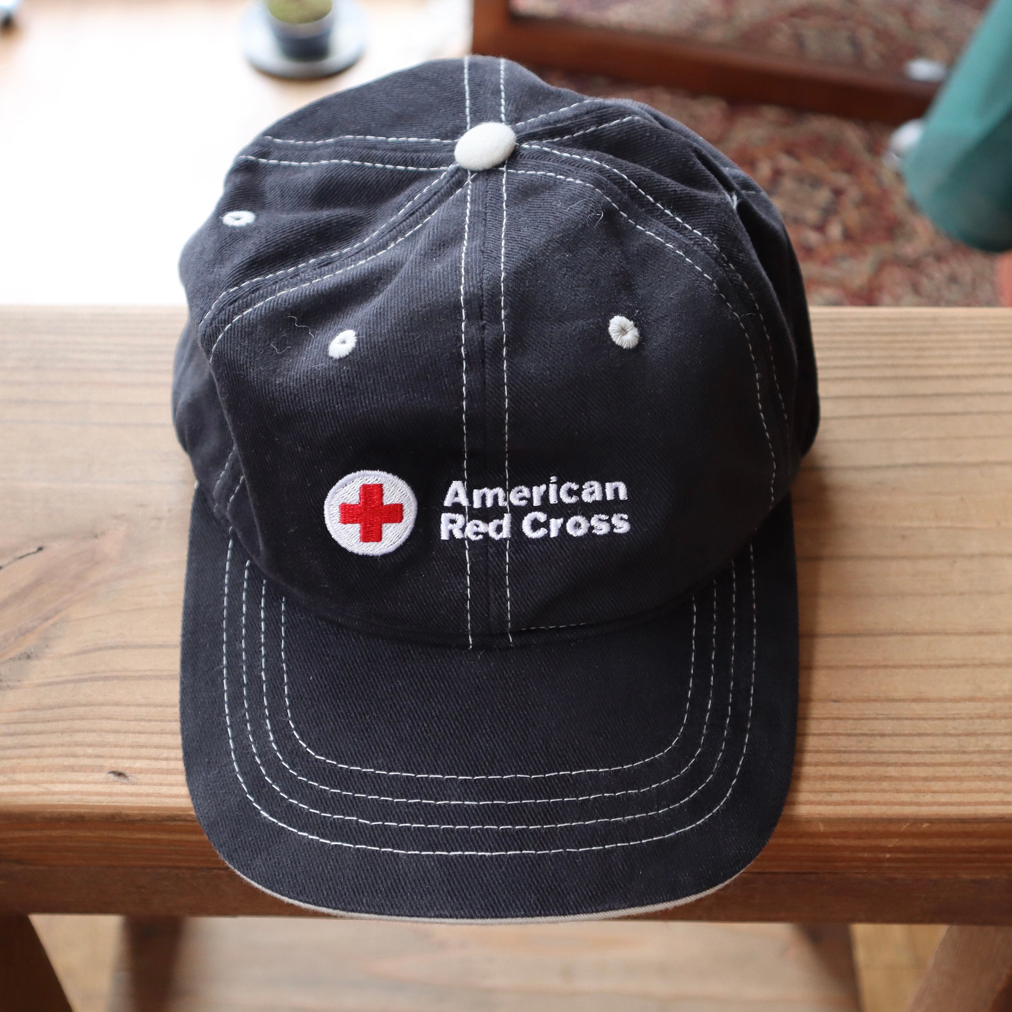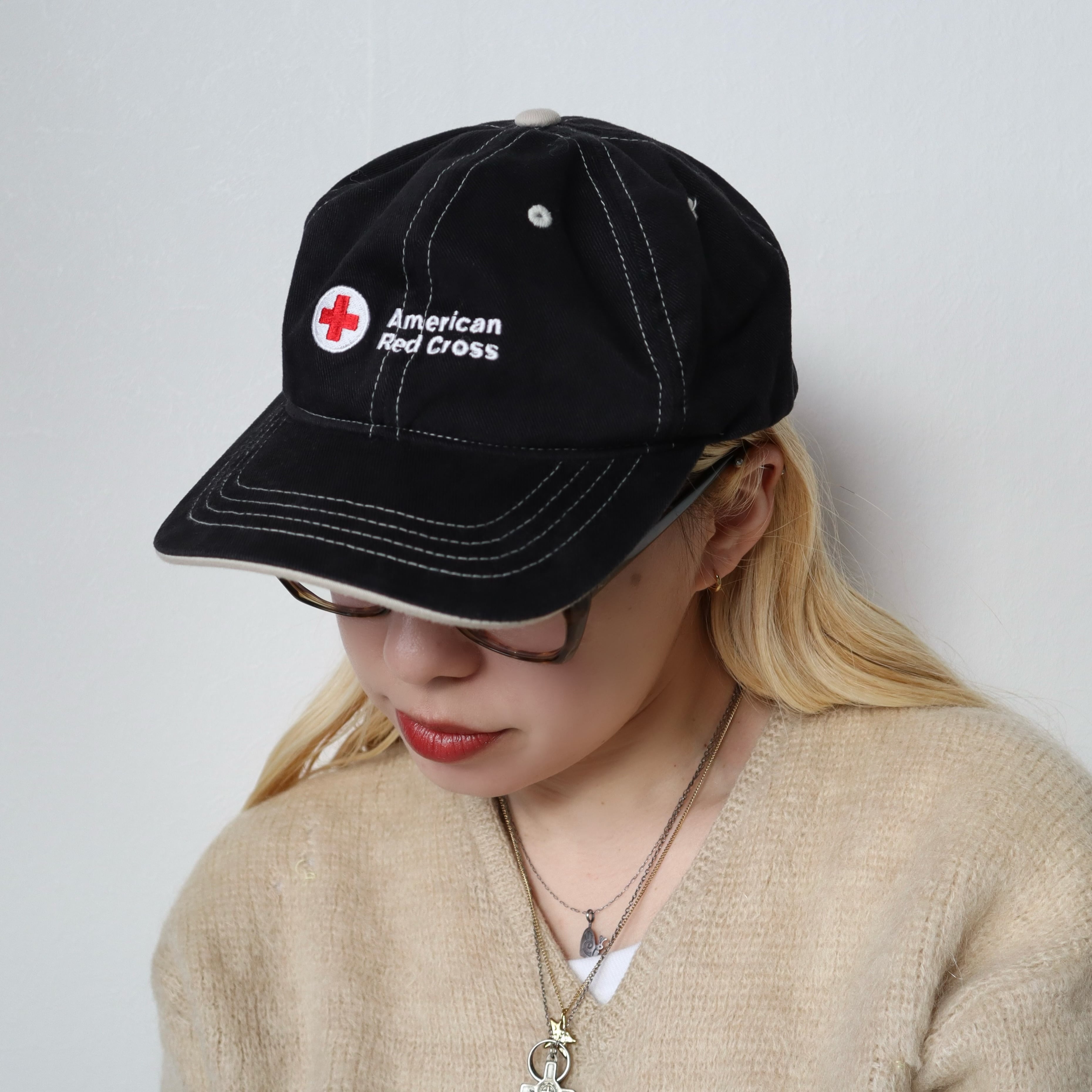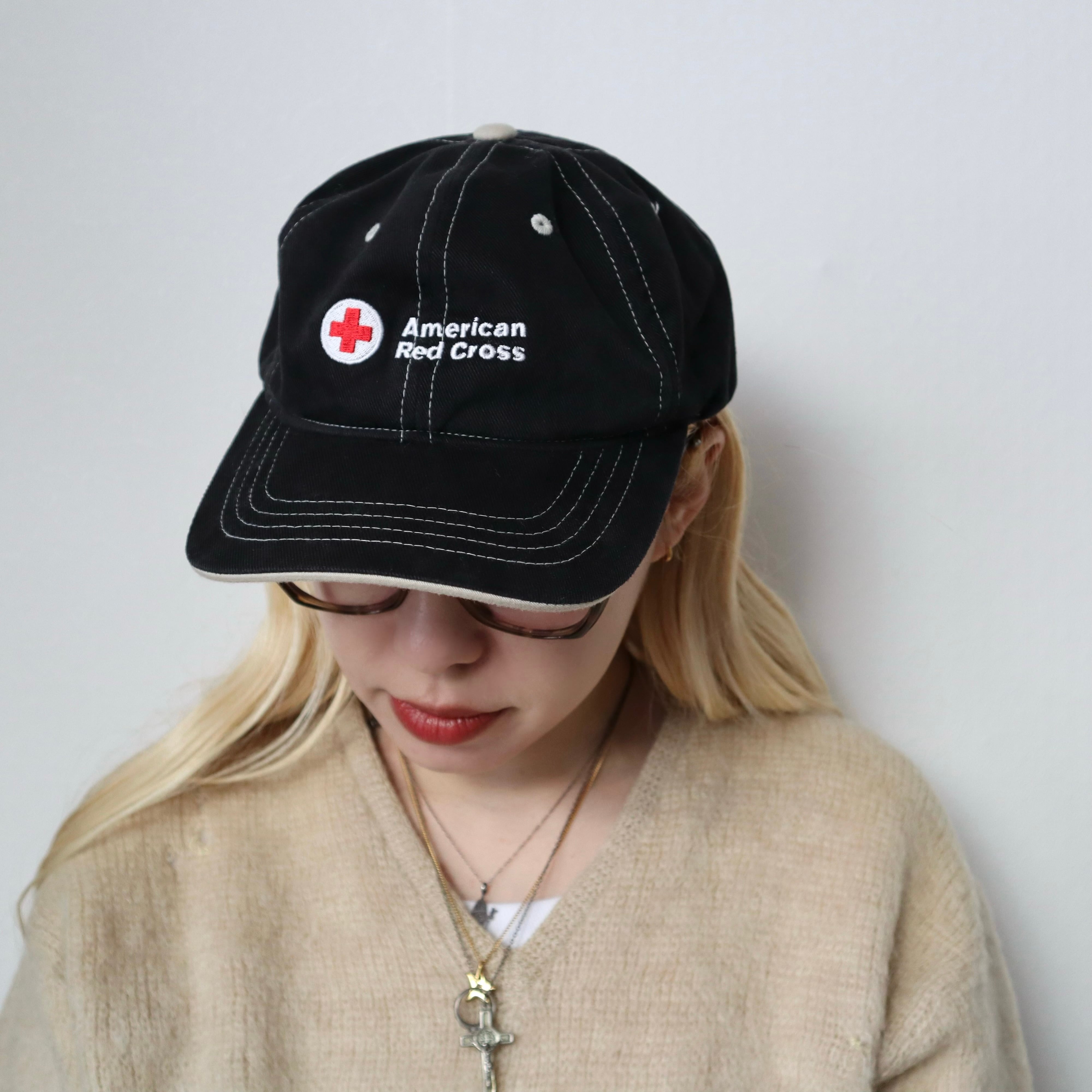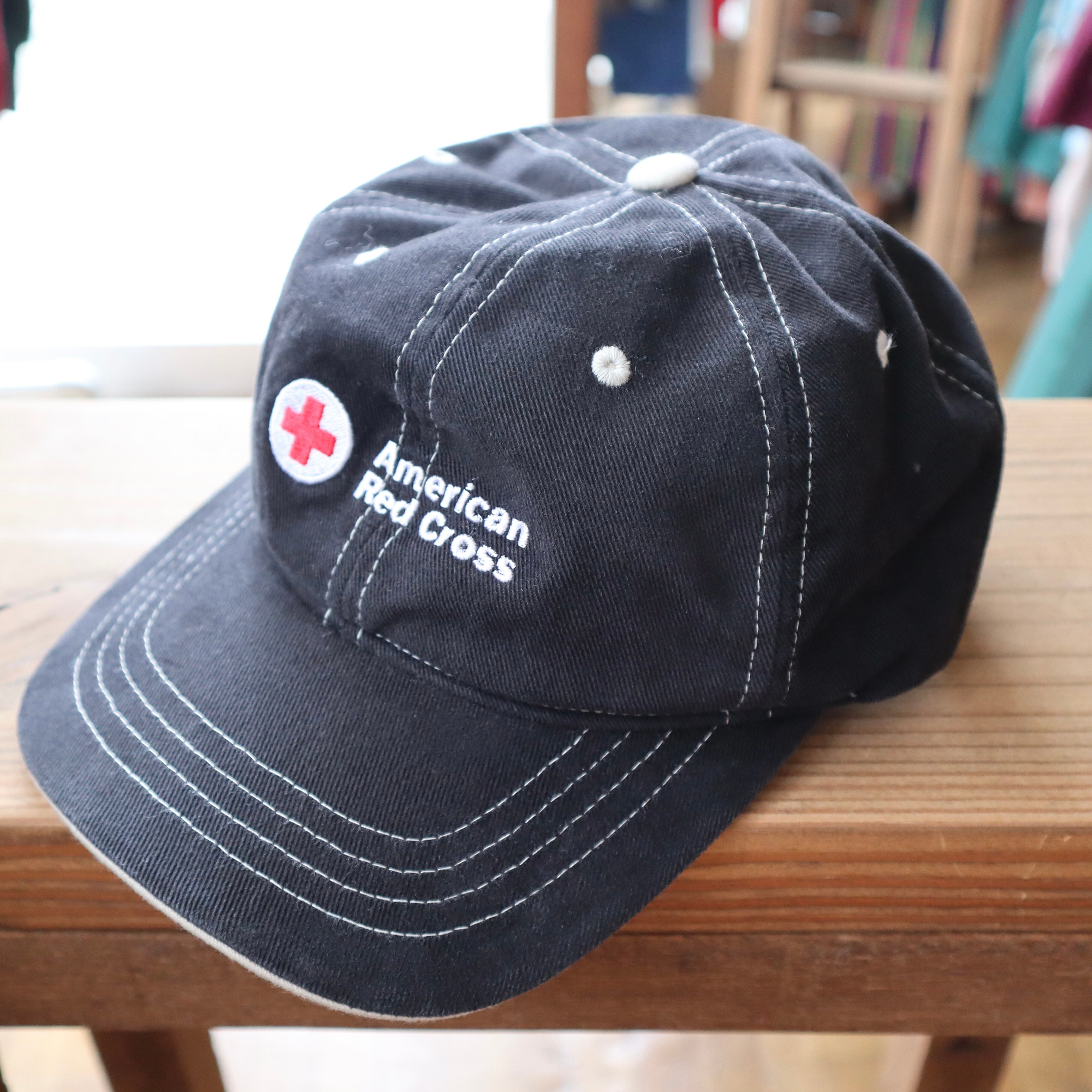 ブラックにアメリカンレッドクロスの刺繍入りキャップです。