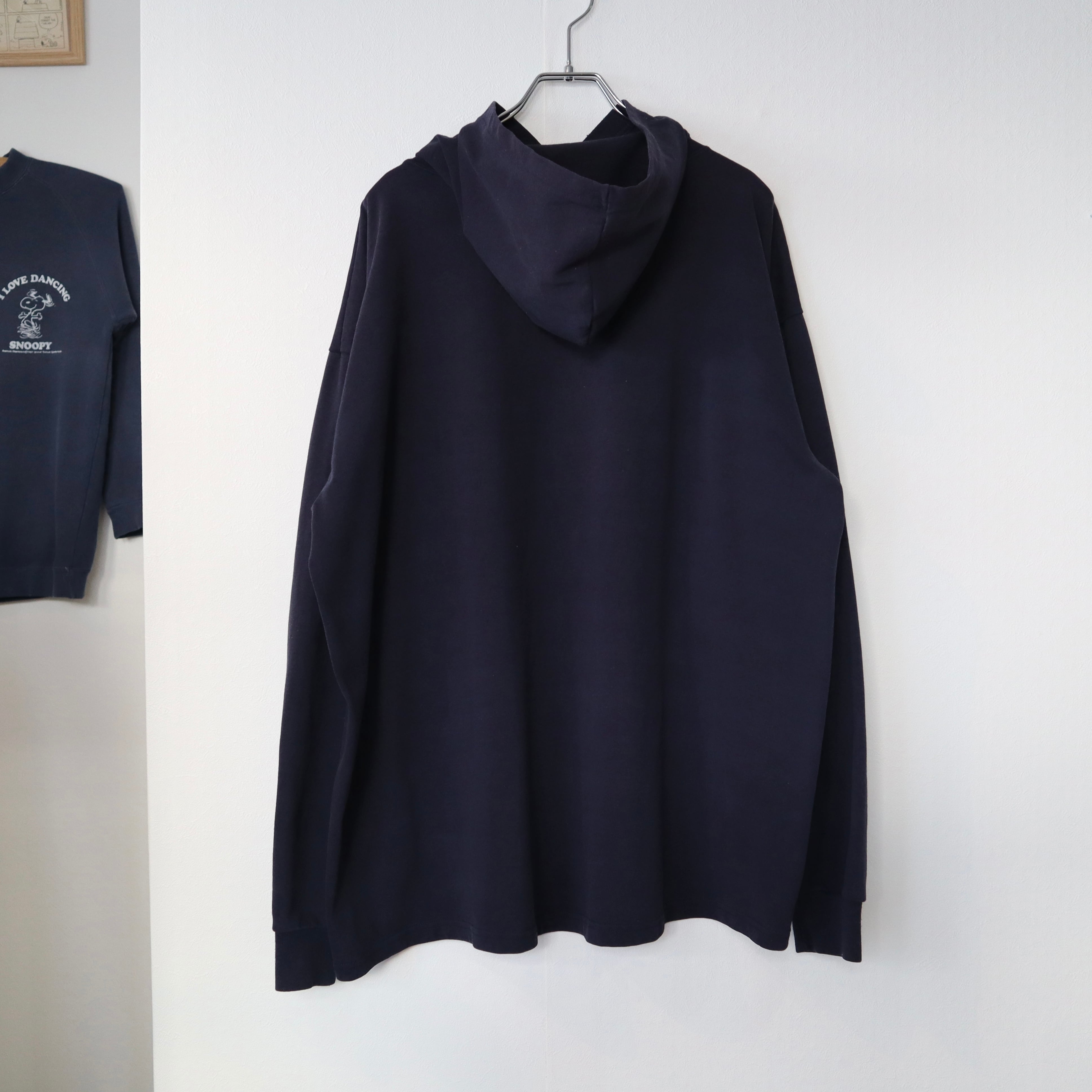 汎用性の高いネイビーボディーのフード付きカットソー。