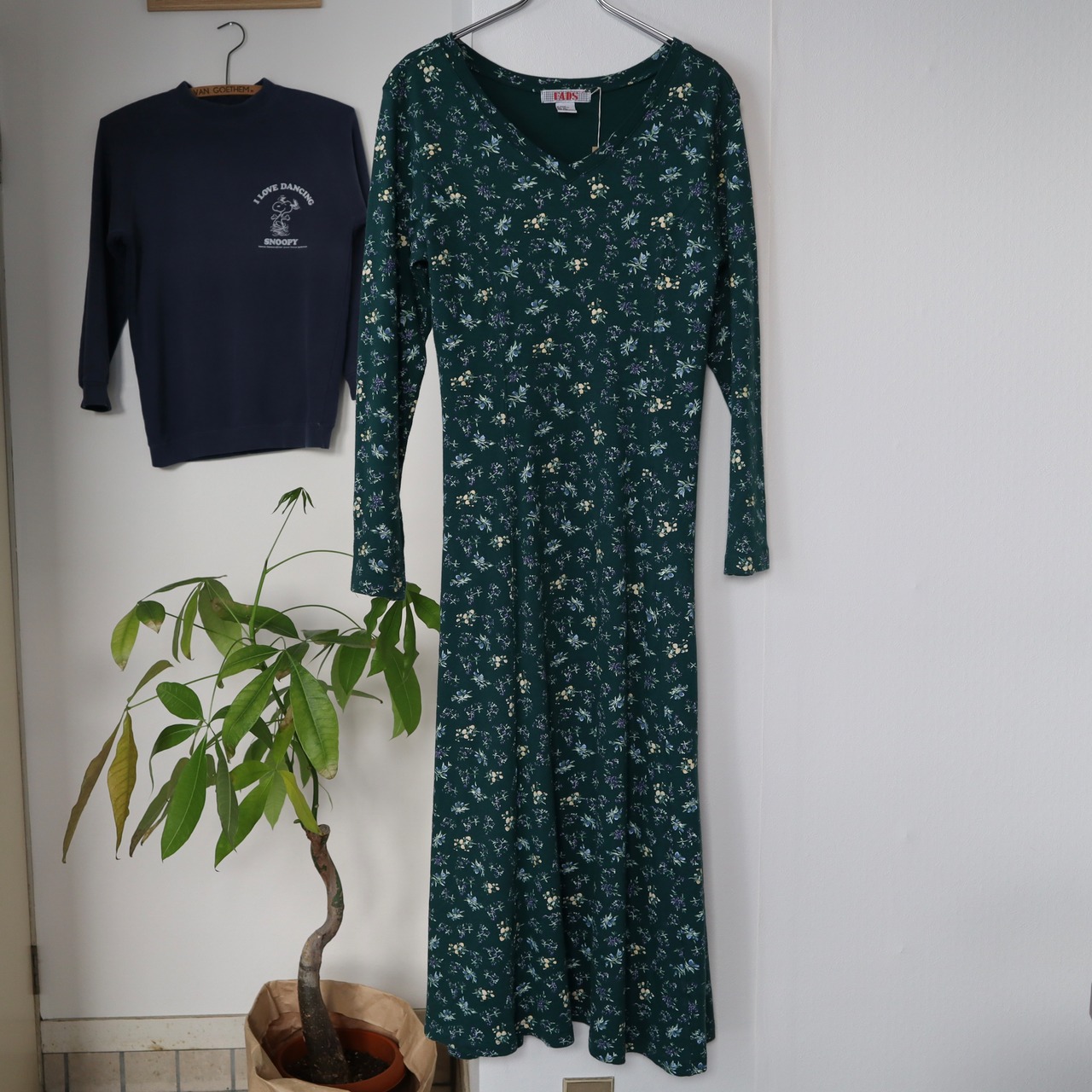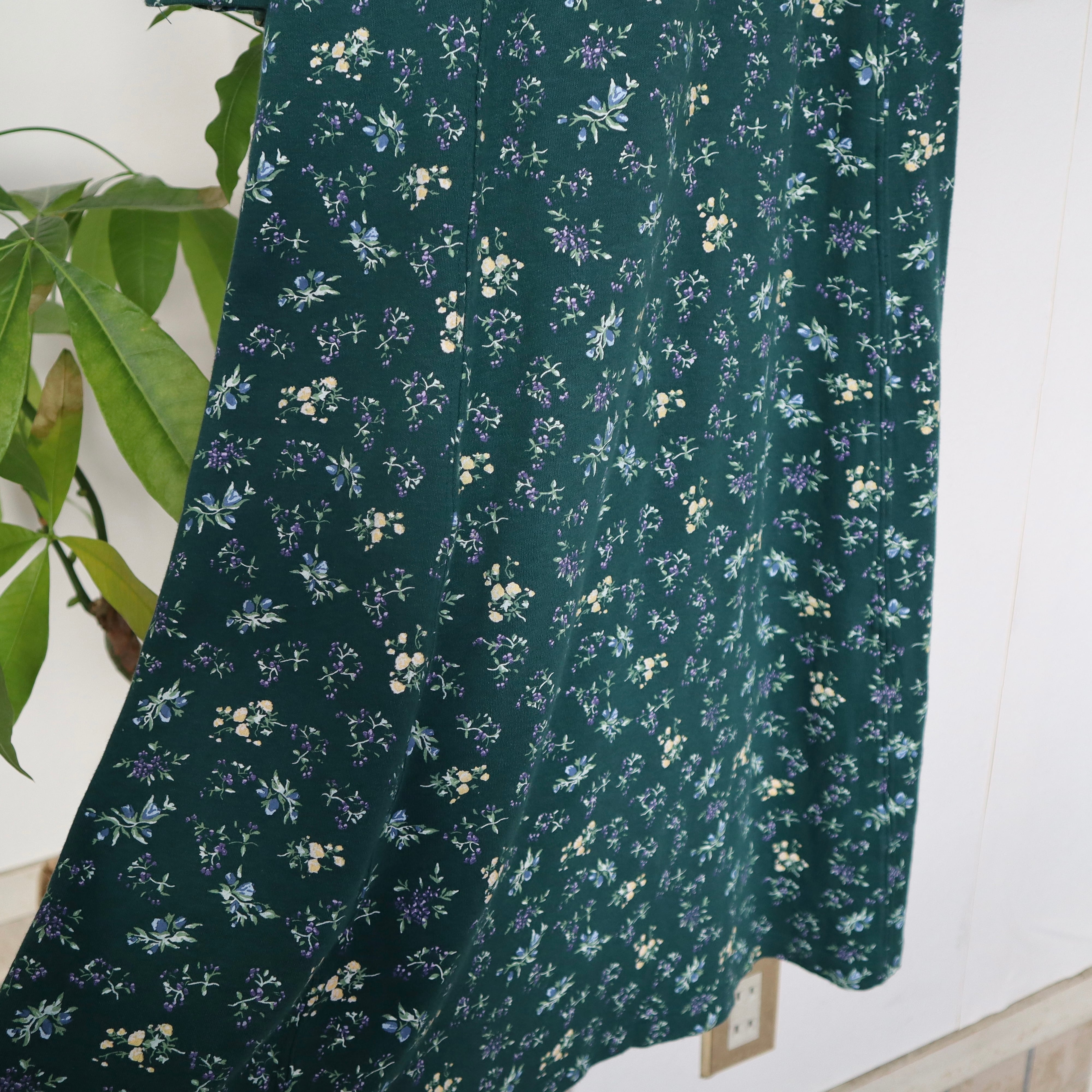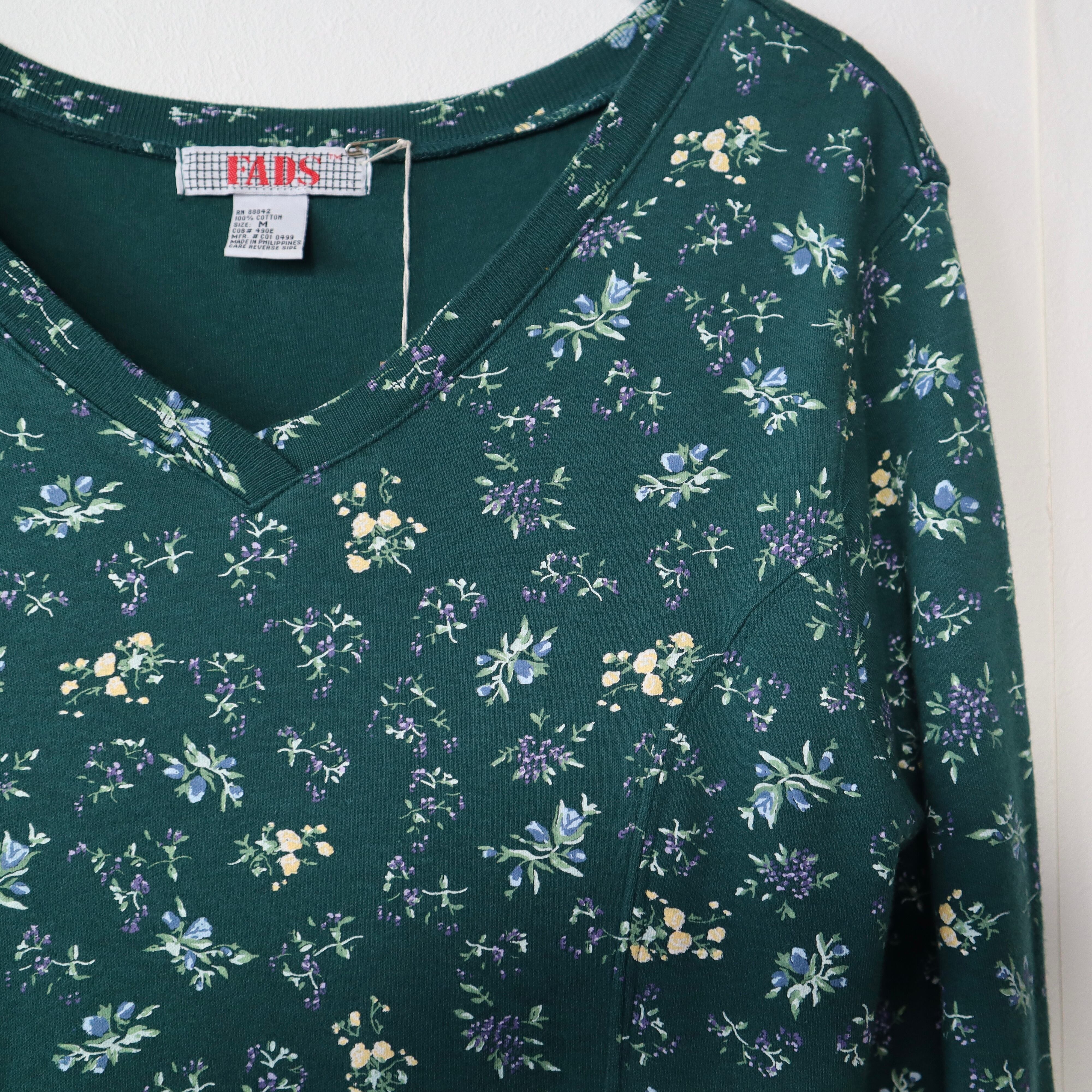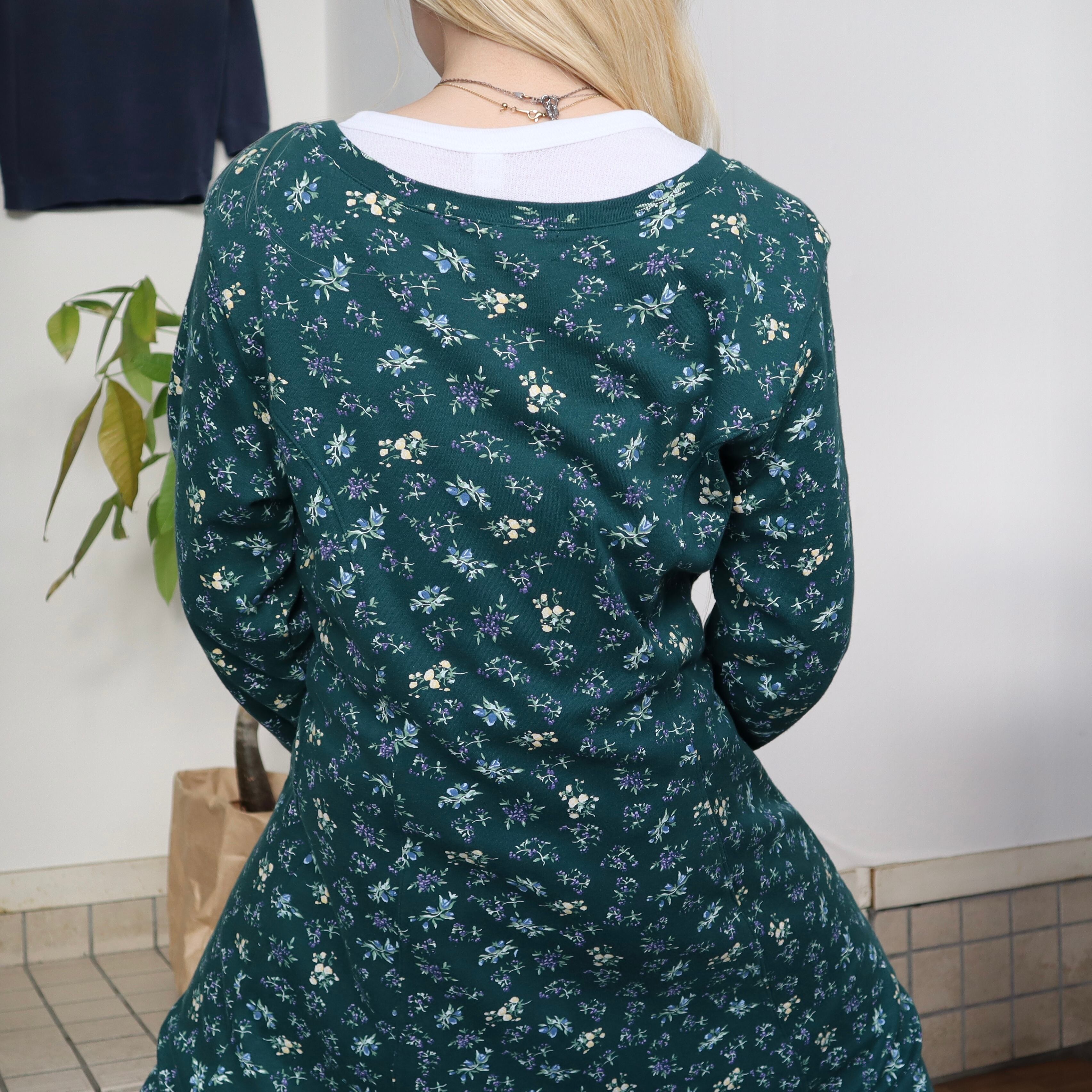 old flower long sleeve dress / green