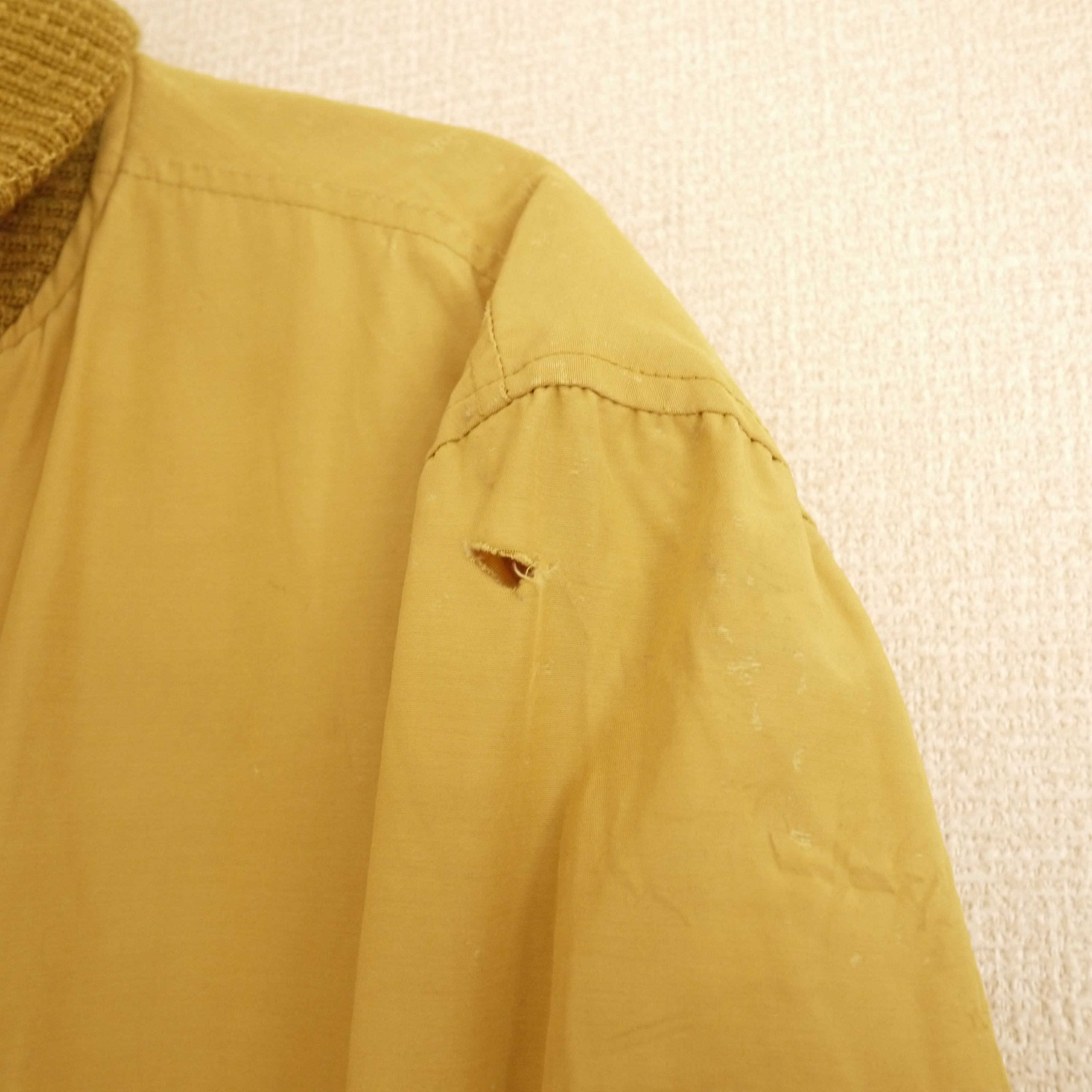 全体的に着用感、小穴、破れ、薄汚れ等が見られますが、着用に支障のあるものではなく、古着慣れされている方でしたら問題なく着用して頂けます。