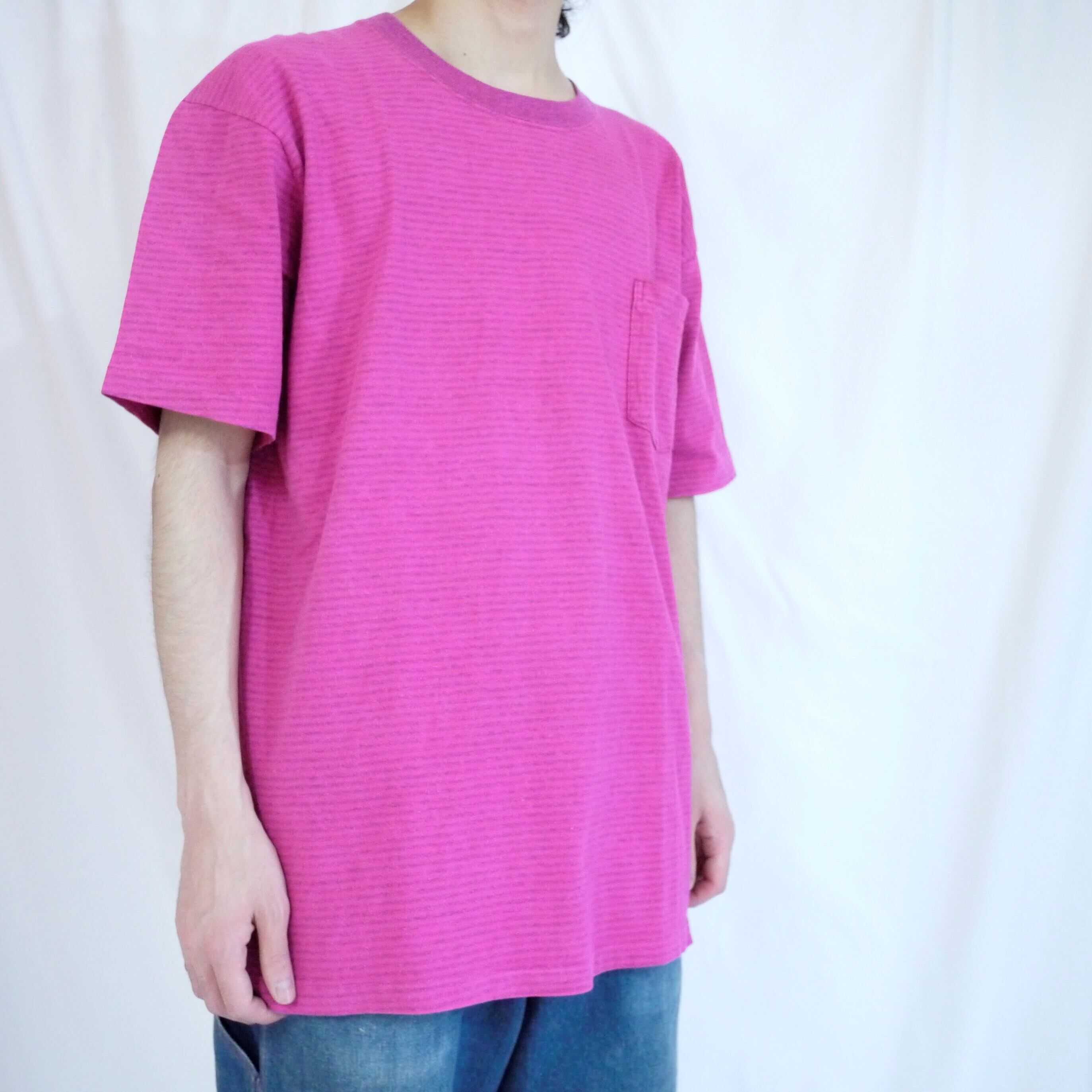 90's "towncraft" border pocket t-shirts pink