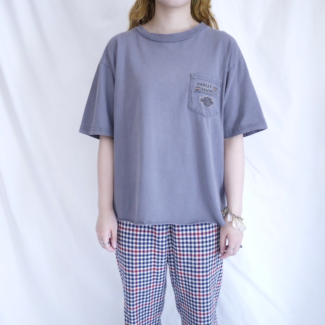 個人的にロゴだけのハーレーTが好きで、前ポケットにもちっちゃく入ってるのがまた良いです◎