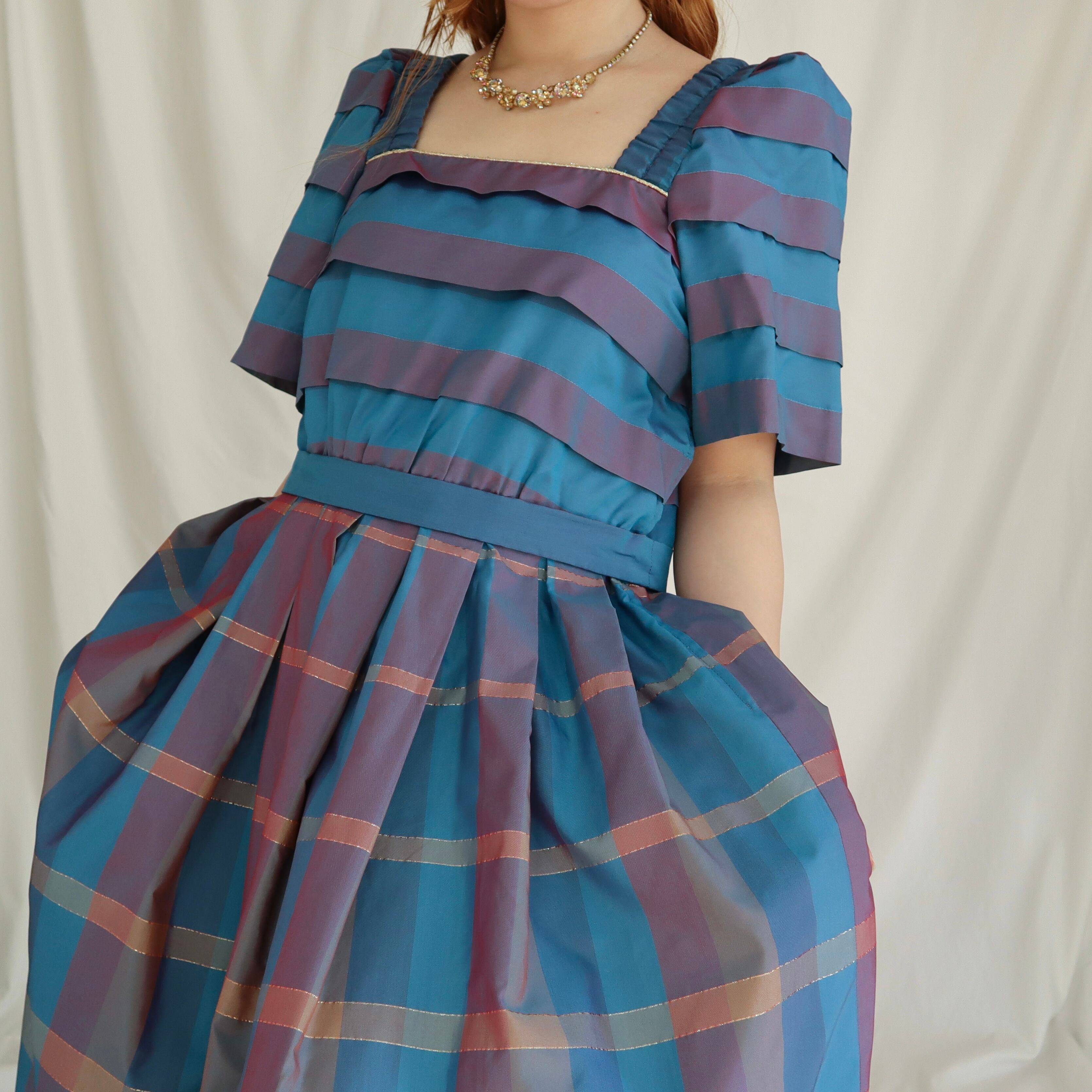 上はボーダーのようなデザインで、スカート部分はチェック柄になっています。
