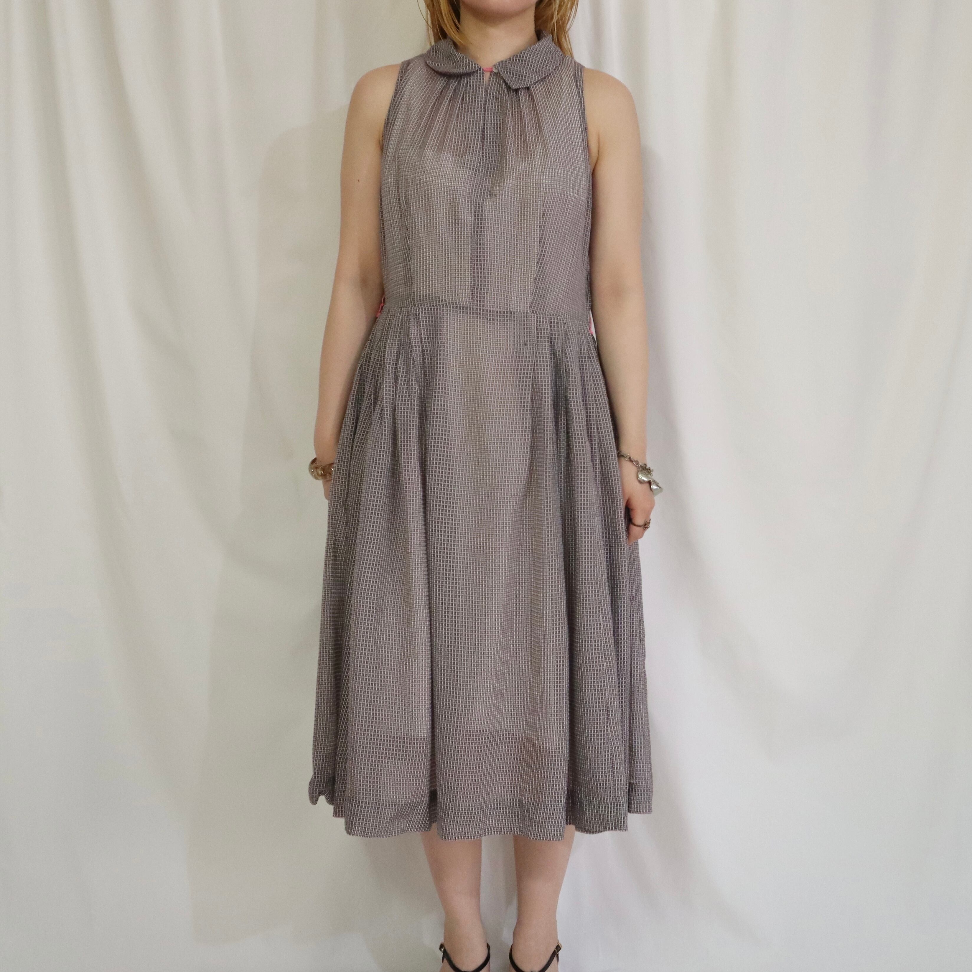 シアー素材のチェック柄ワンピースです。