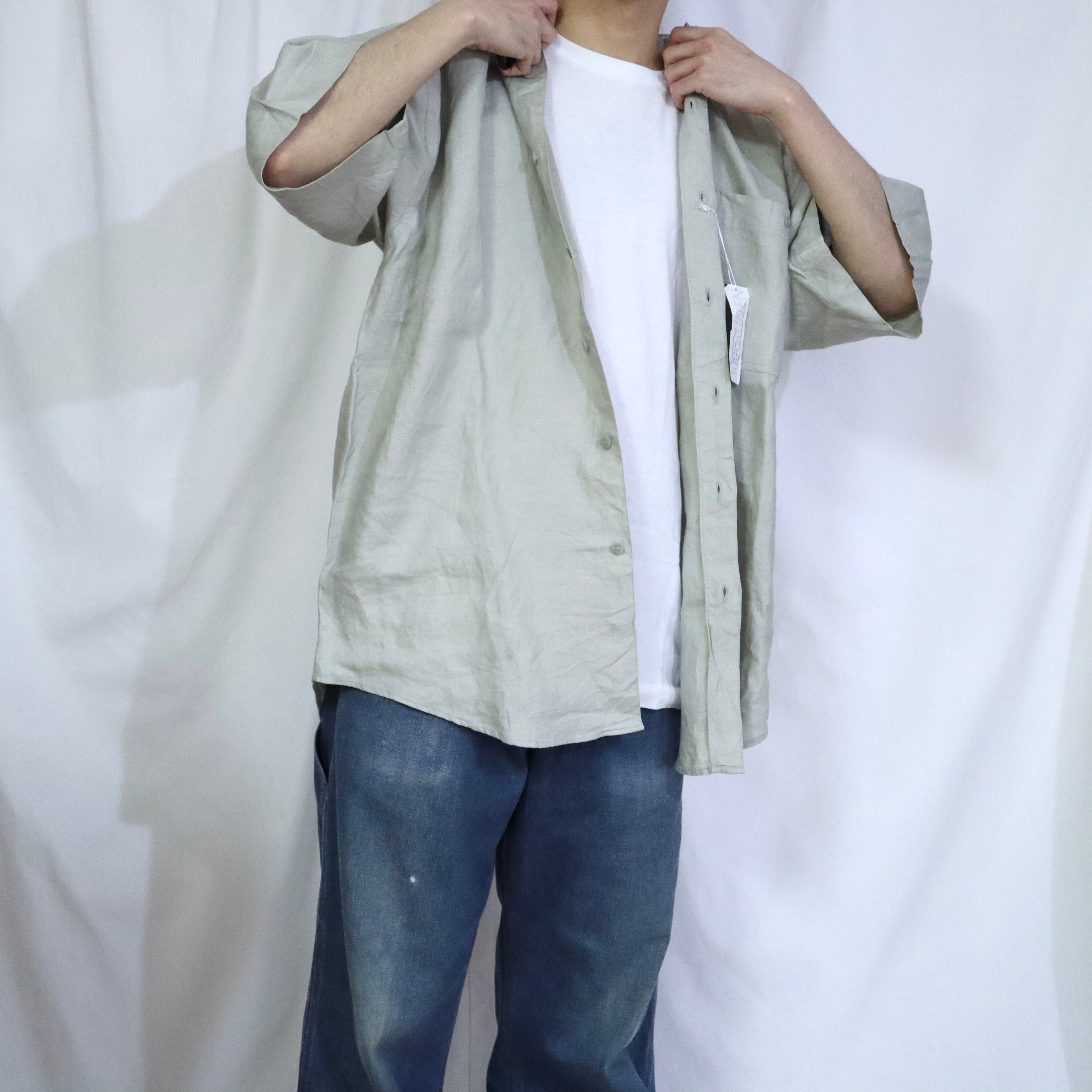 dead stock old "goouch" linen s/s shirts SAGE