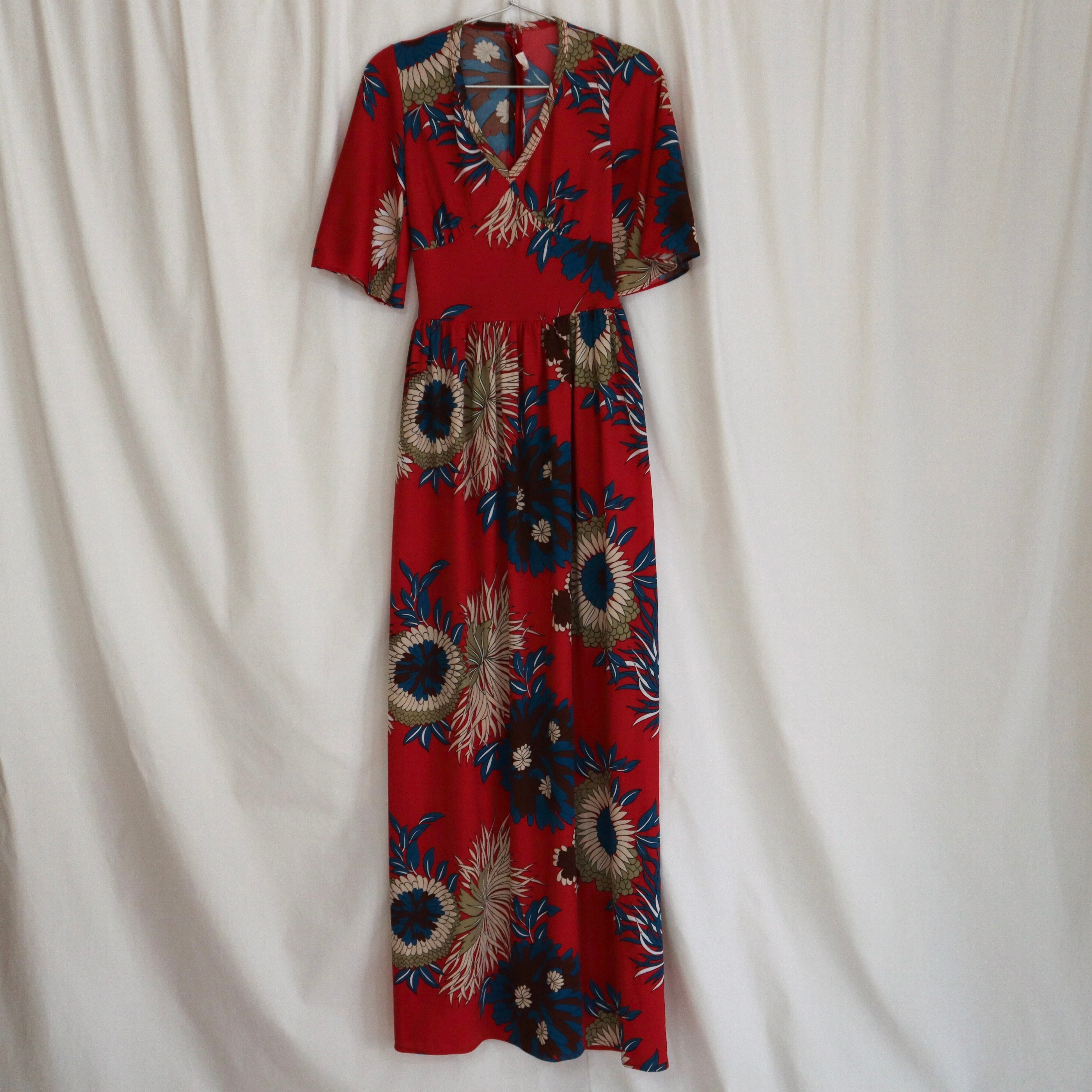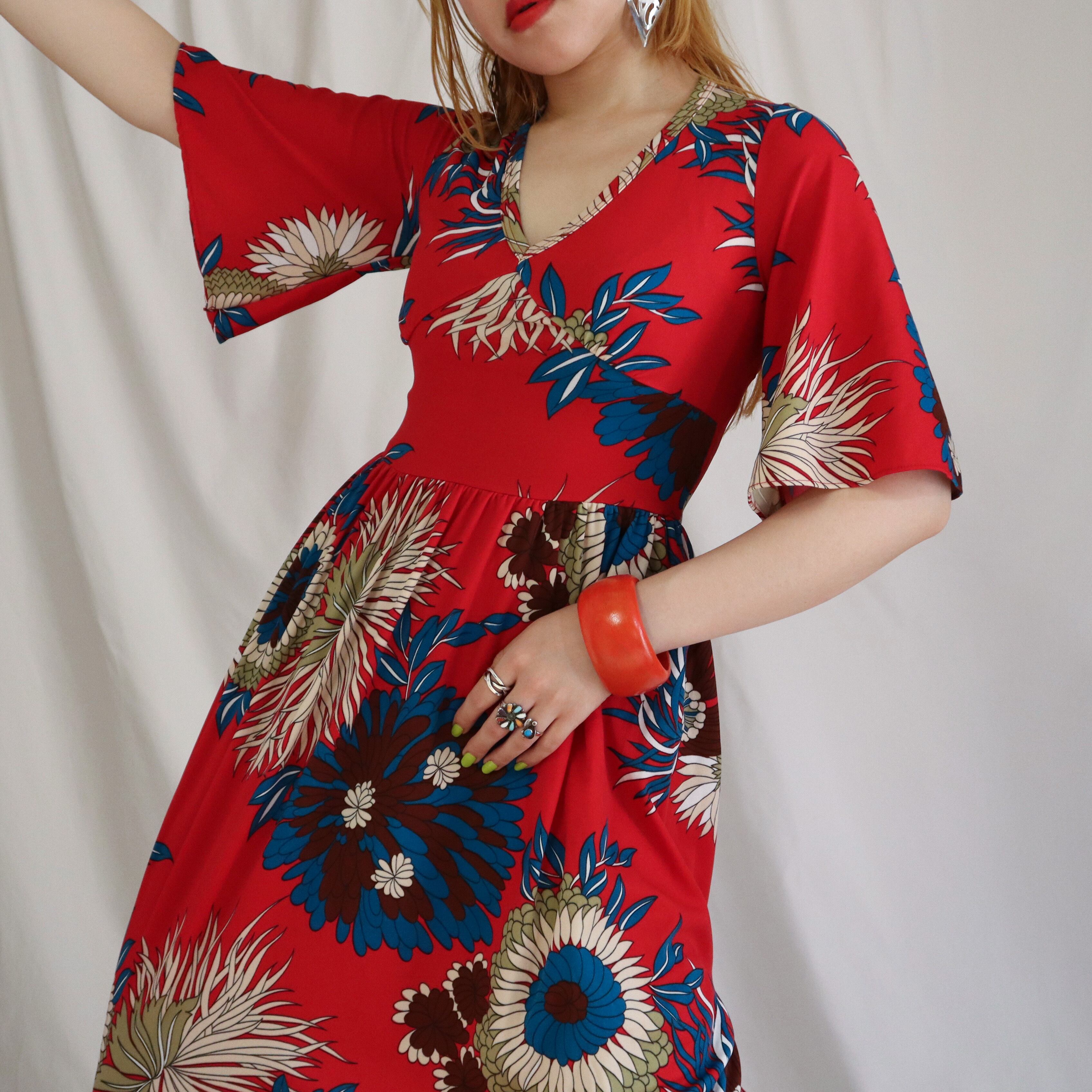 大きめな花柄は青と赤のコントラストが綺麗です。