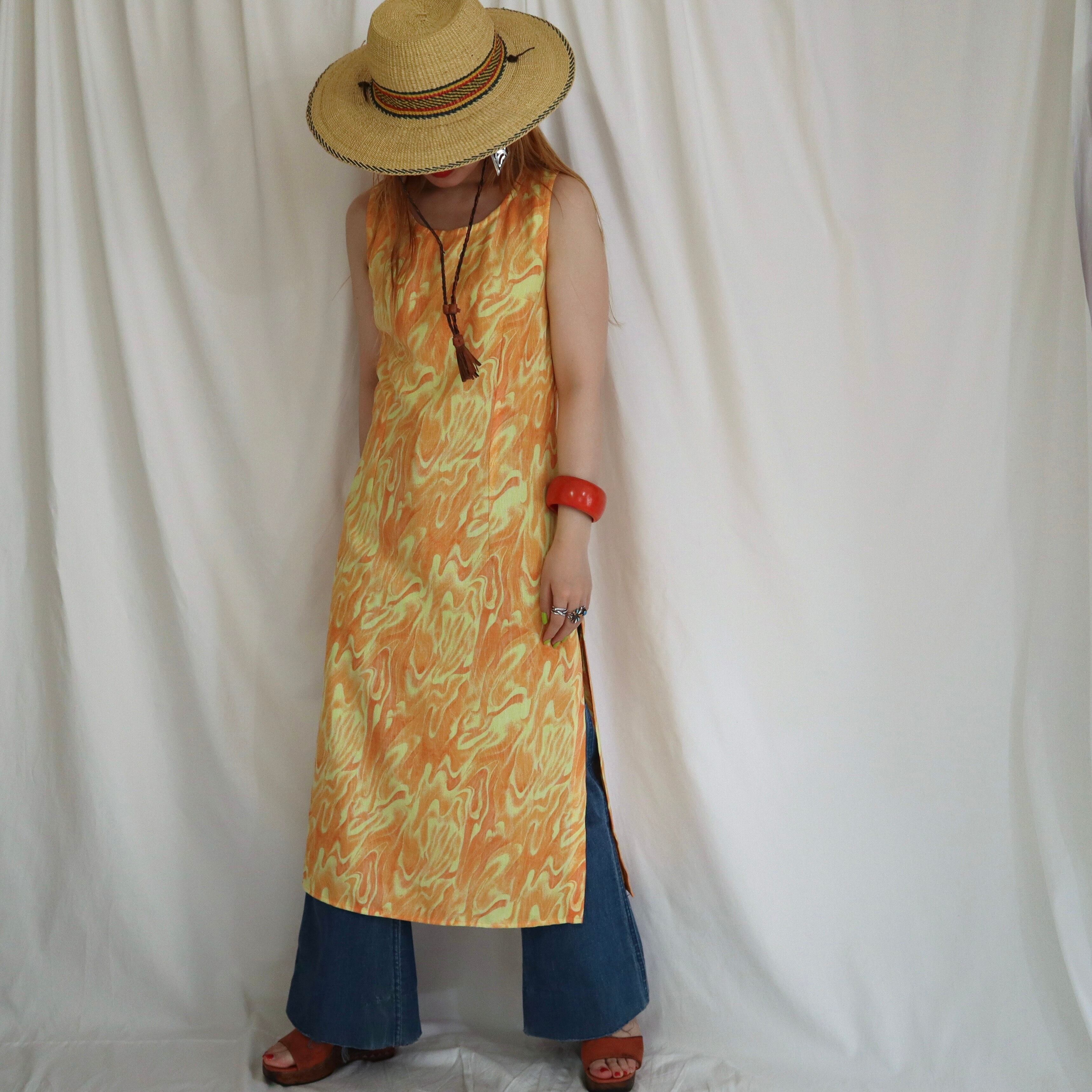 old pattern sleeveless dress / ORANGE