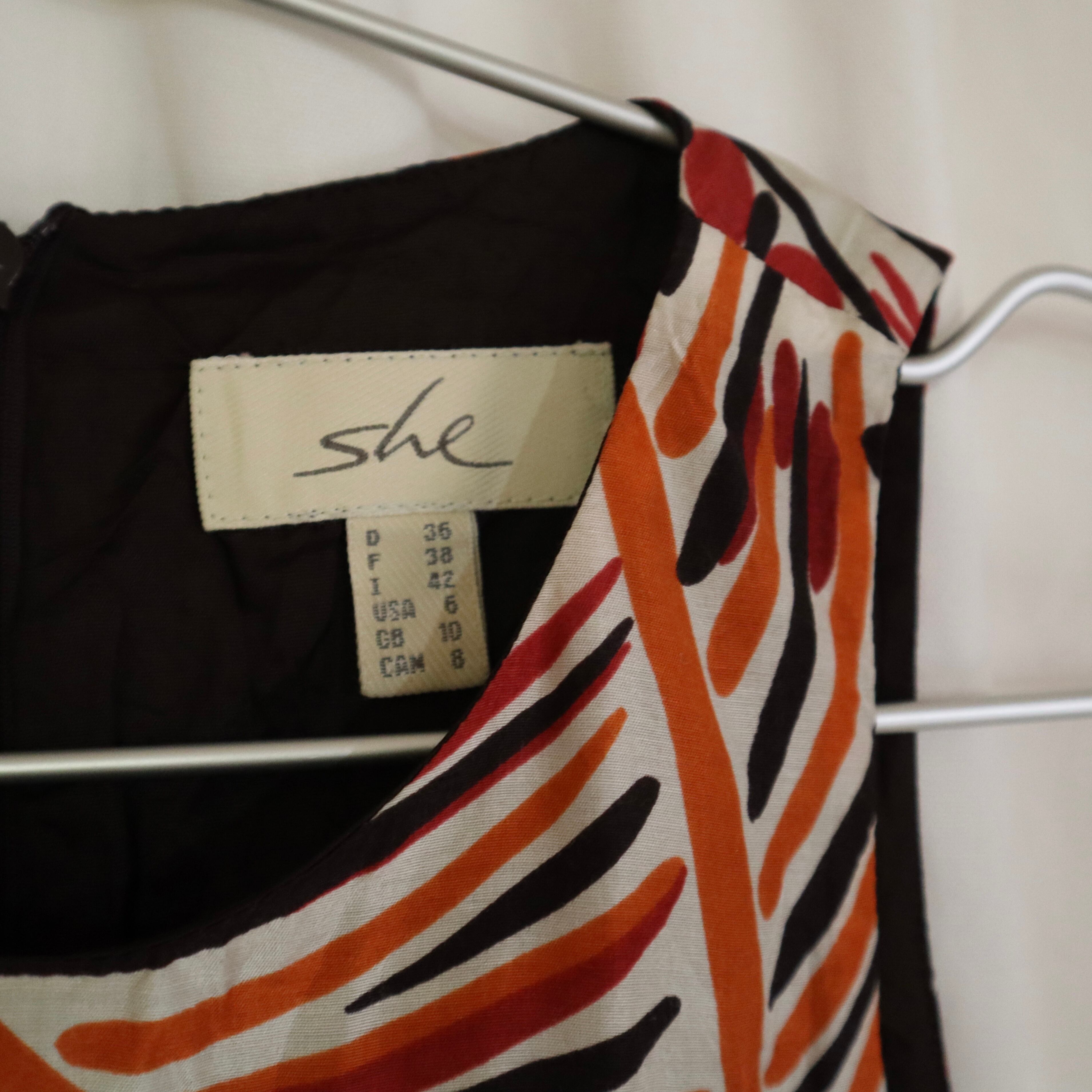 シンプルなシルエットですが、大きな葉っぱの柄が目を惹きます。