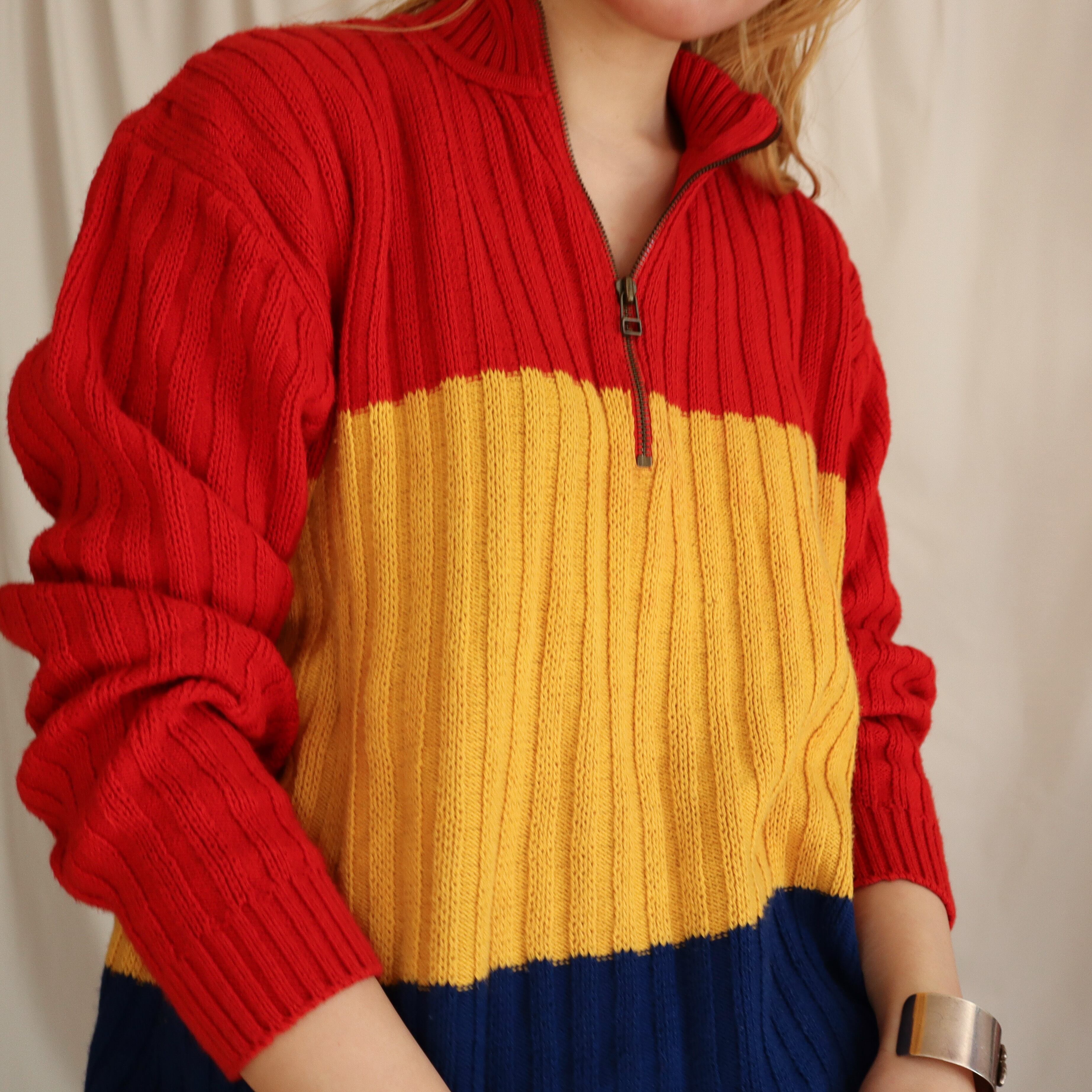 old switching design cotton knit / red yellow blue