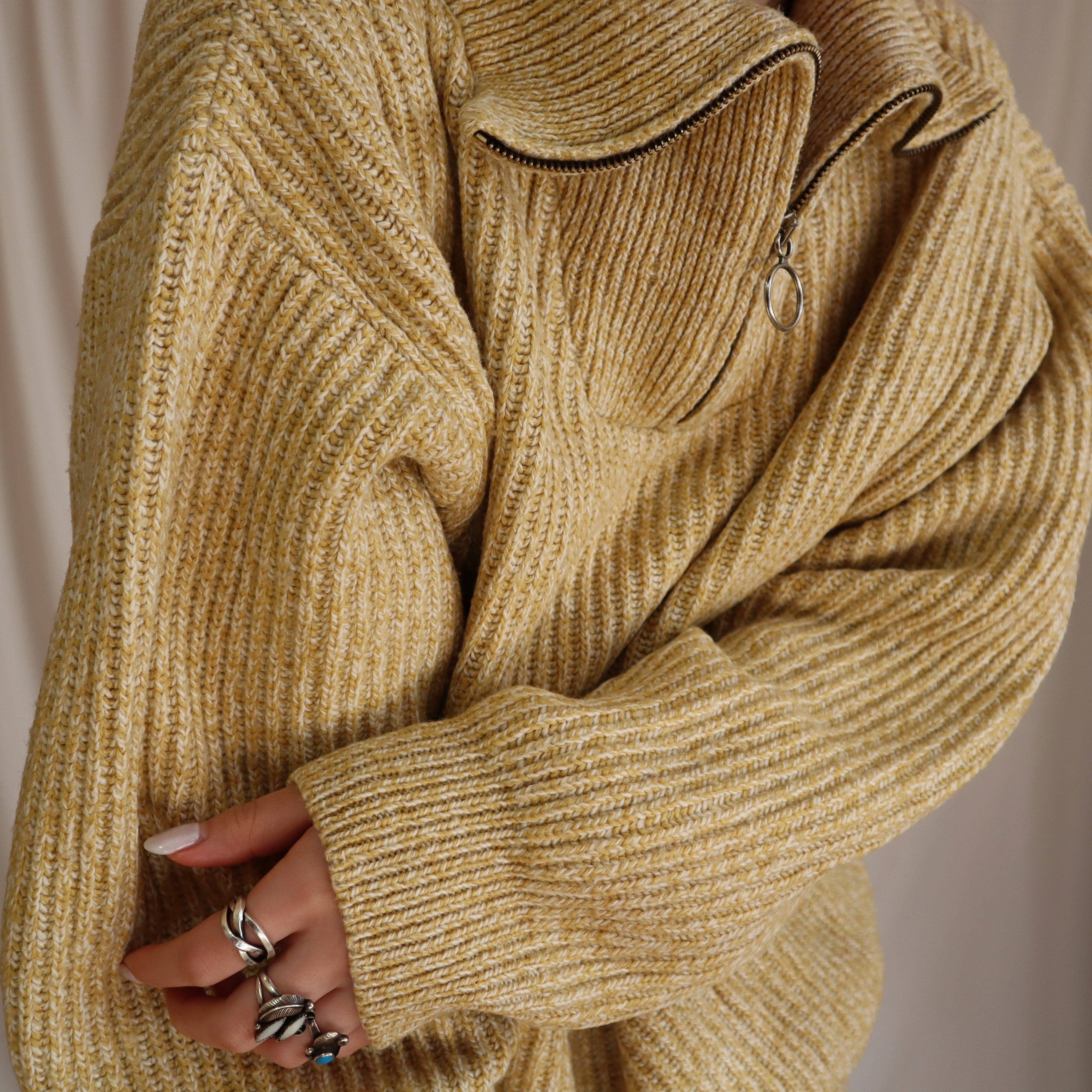 流行りのハーフジップ、クリーミーなイエローカラーでそろそろ春意識!な方にぴったりです。