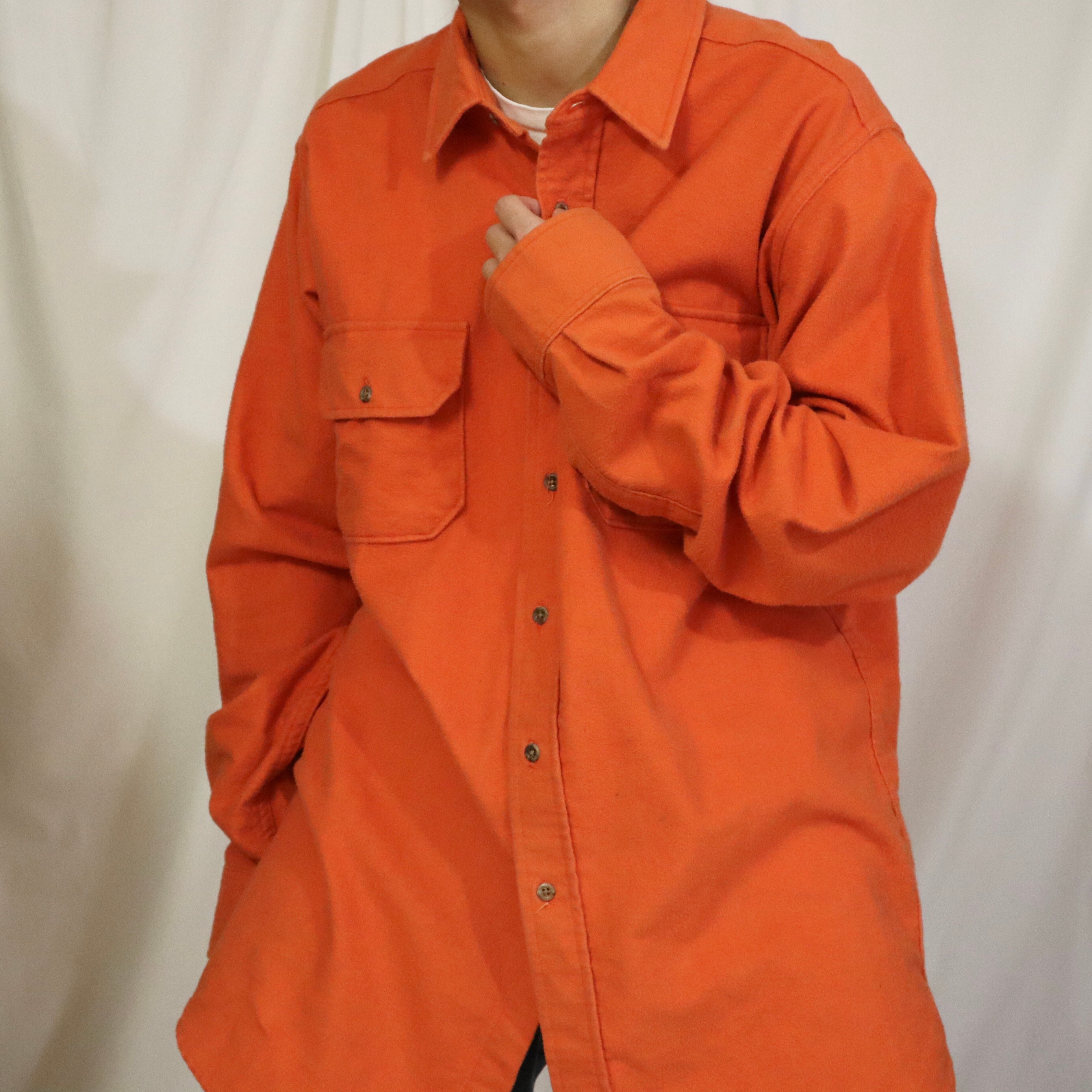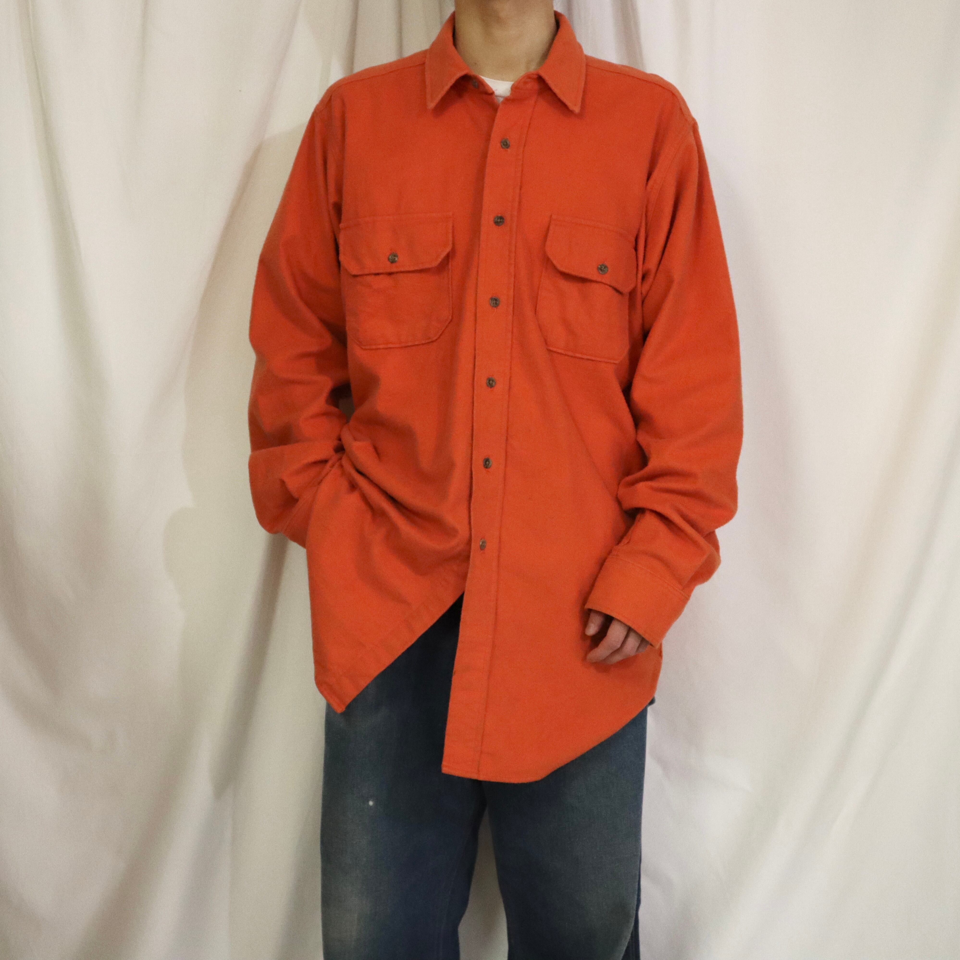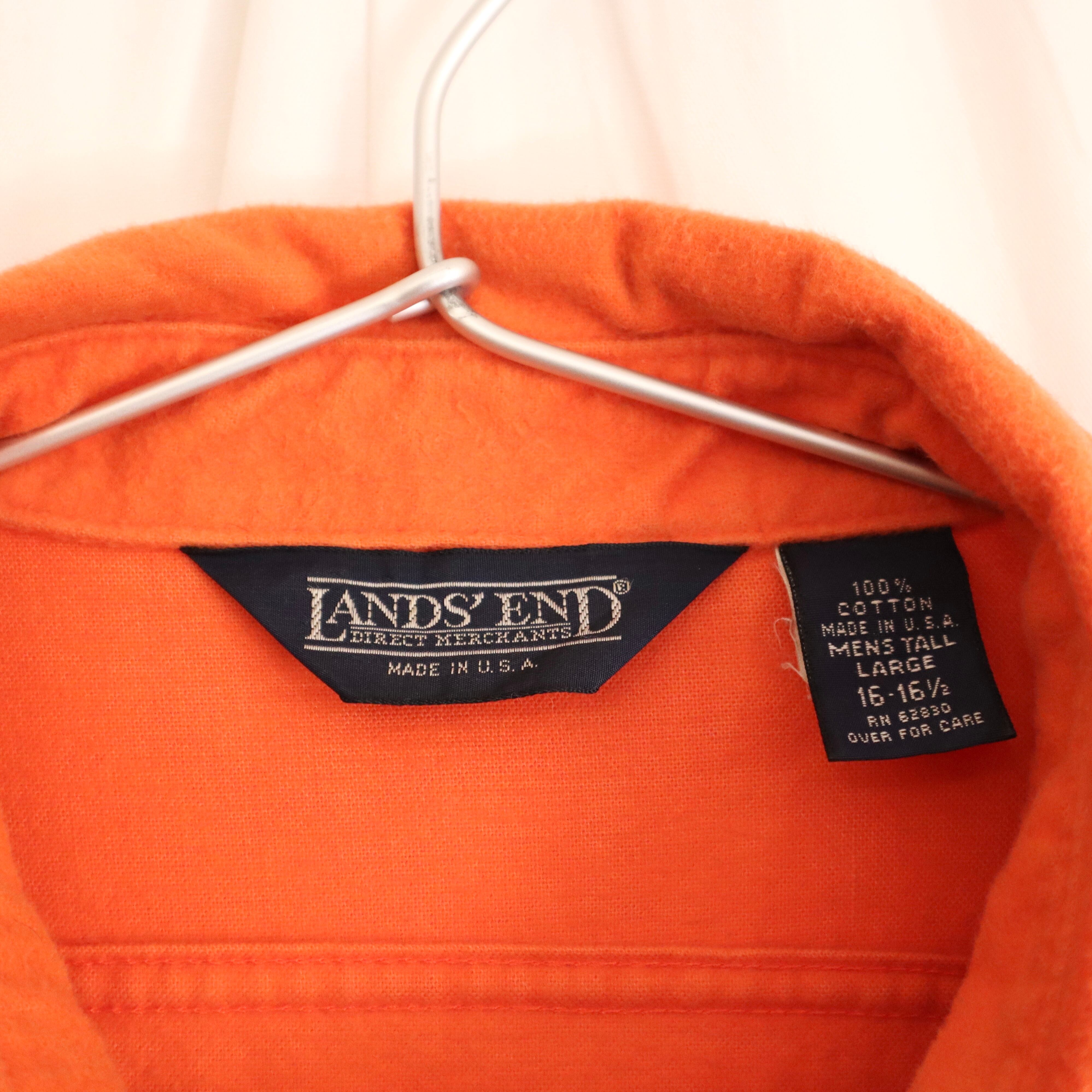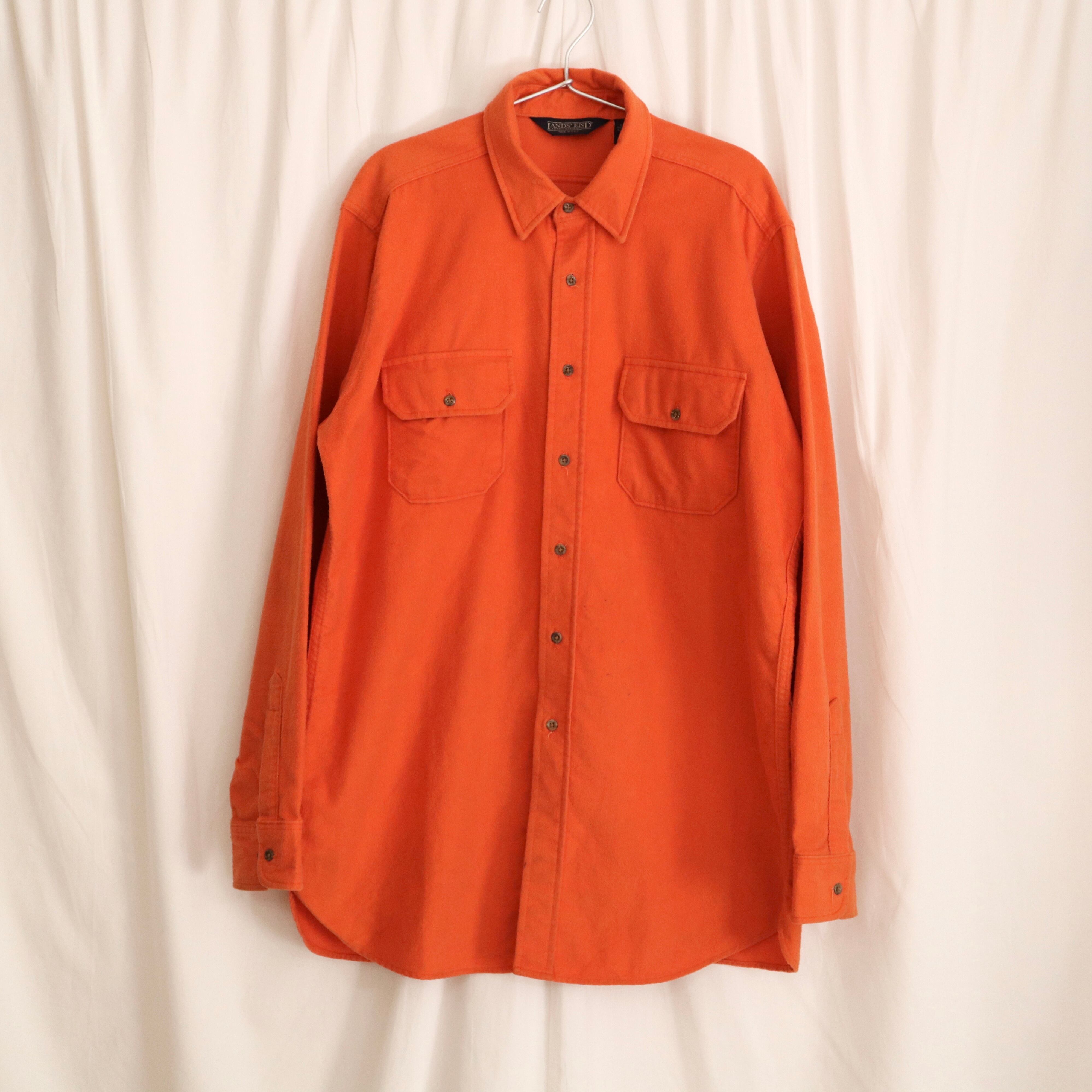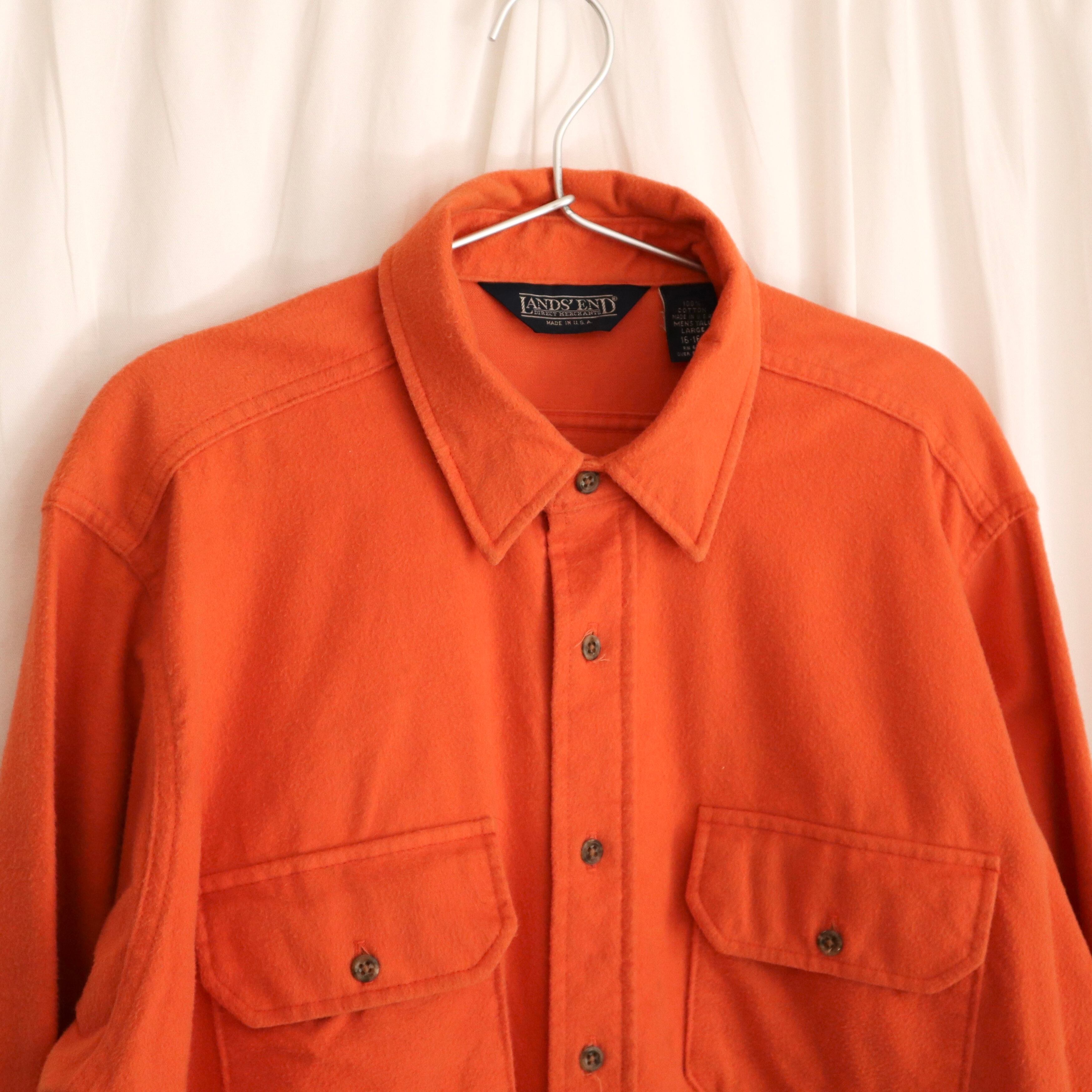 1990s "lands end" orange chamois cloth l/s shirts